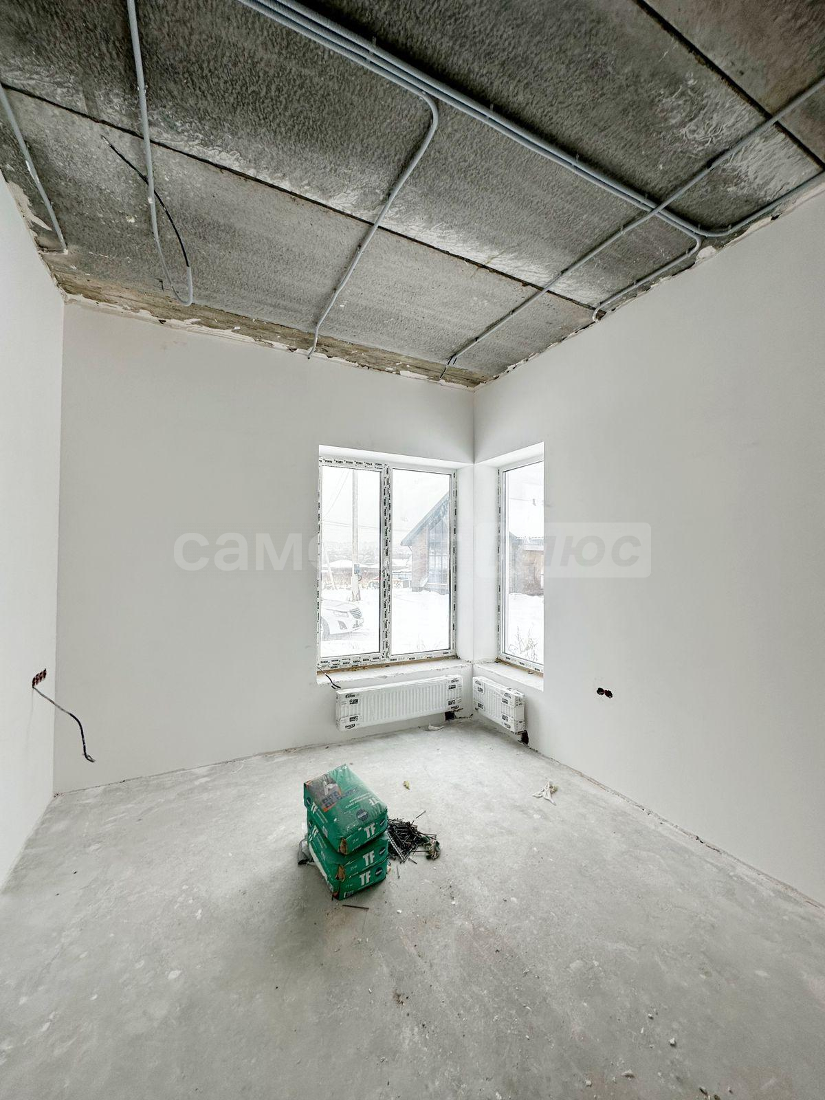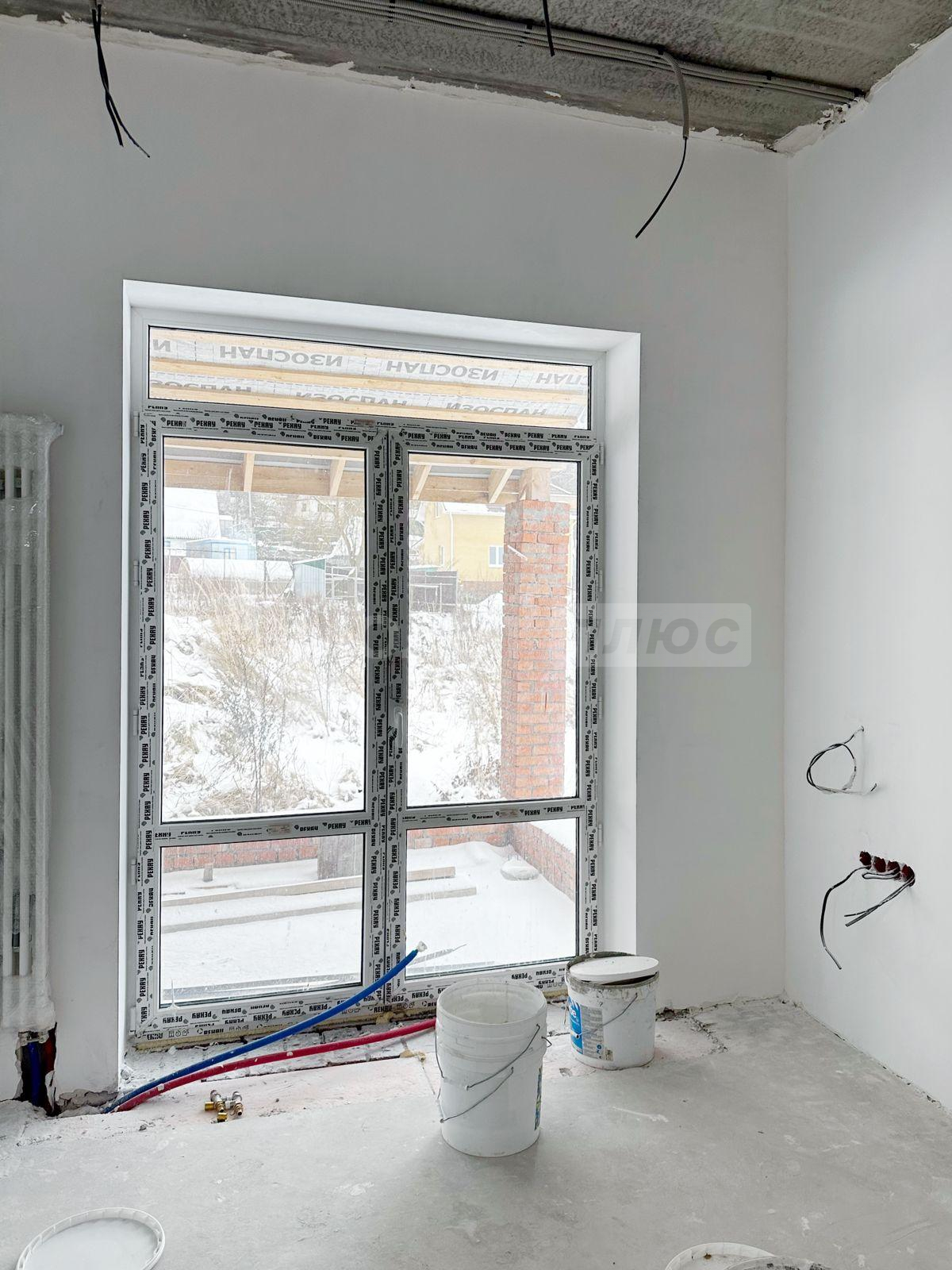 стяжка пола, установка стеклопакетов, монтаж системы отопления, водоснабжения и газового счетчика.