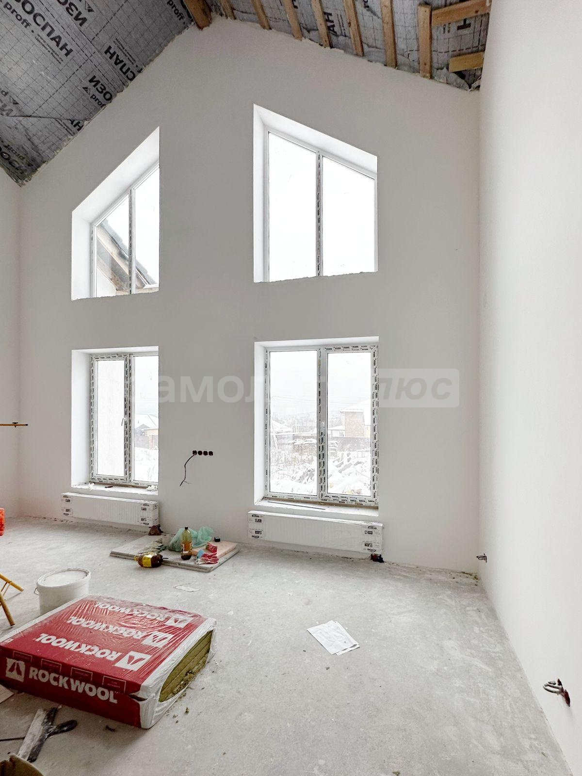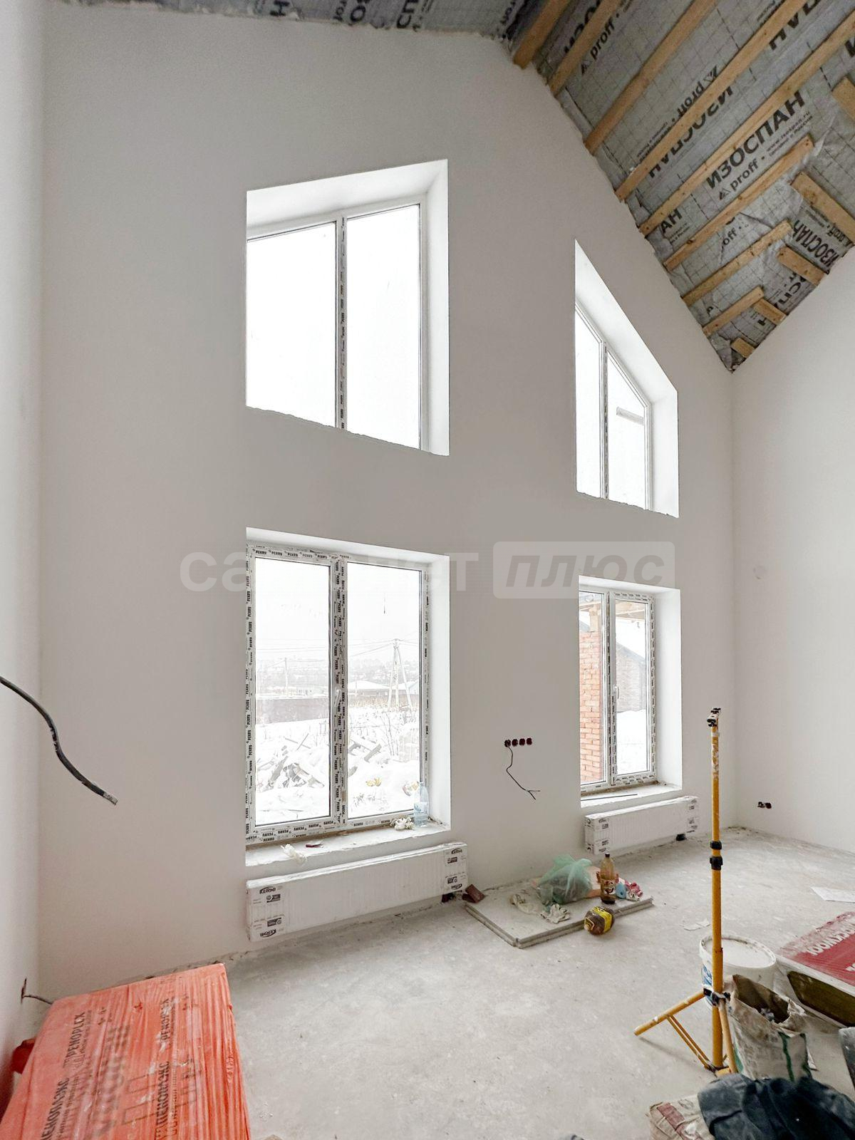 В мокрых точках цементная смесь ROTBAND. Шпатлёвка на стенах - VETONIT KNAUF паста. Окна двухкамерные REHAU 72 профиль. Двери в гостиной и в мастер- спальне штульповые шириной 2 метра. Установлен котёл BAXI. Рассчитан на 320 м2, это с учётом если люди захотят использовать мансардное пространство, то есть сделать отапливаемым. Межэтажные перекрытия, несмотря на то, что дом одноэтажный - железобетонные. Есть 2- е мансардных лестницы, по которым можно подняться на подкрышное пространство. Сделано утепление крыши, что позволяет сразу использовать мансардное пространство. В каждом есть окна. Тёплые полы сделаны из сшитого полипропилена. Стоят стальные радиаторы KERMI. В санузлах установлены дорогие инсталляции TECE. Крыша на веранде площадью порядка 40 м2 также утеплена для удобства новых хозяев, если захотят использовать как дополнительное пространство. В доме 2- е входных группы. Из котельни есть дополнительный выход на веранду. В котельне расположена лапомойка.