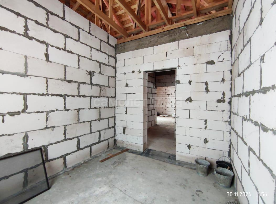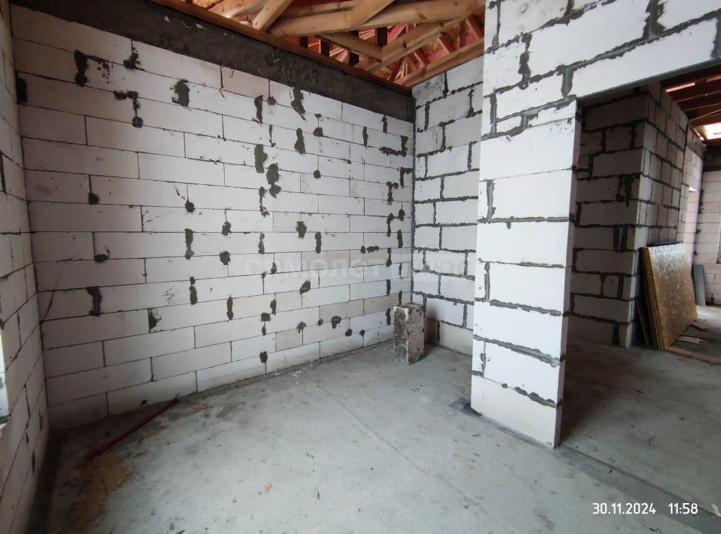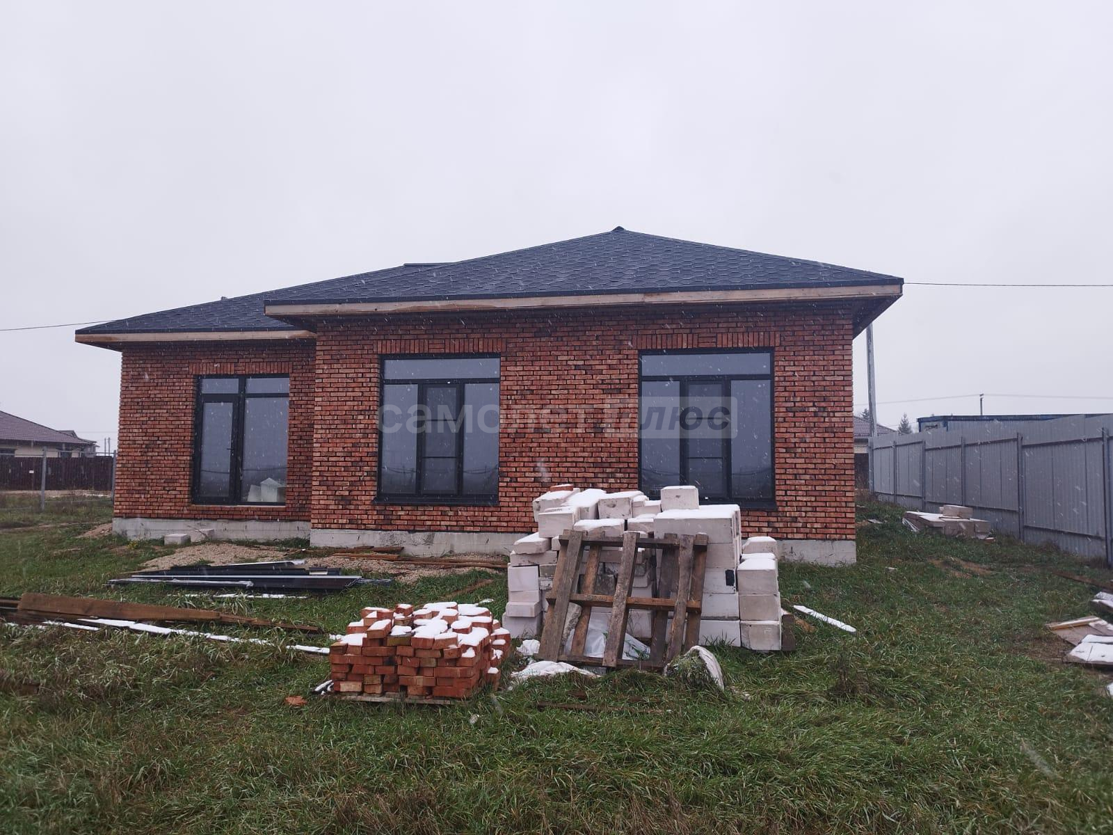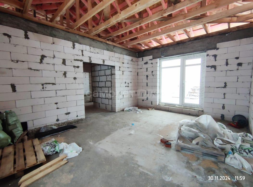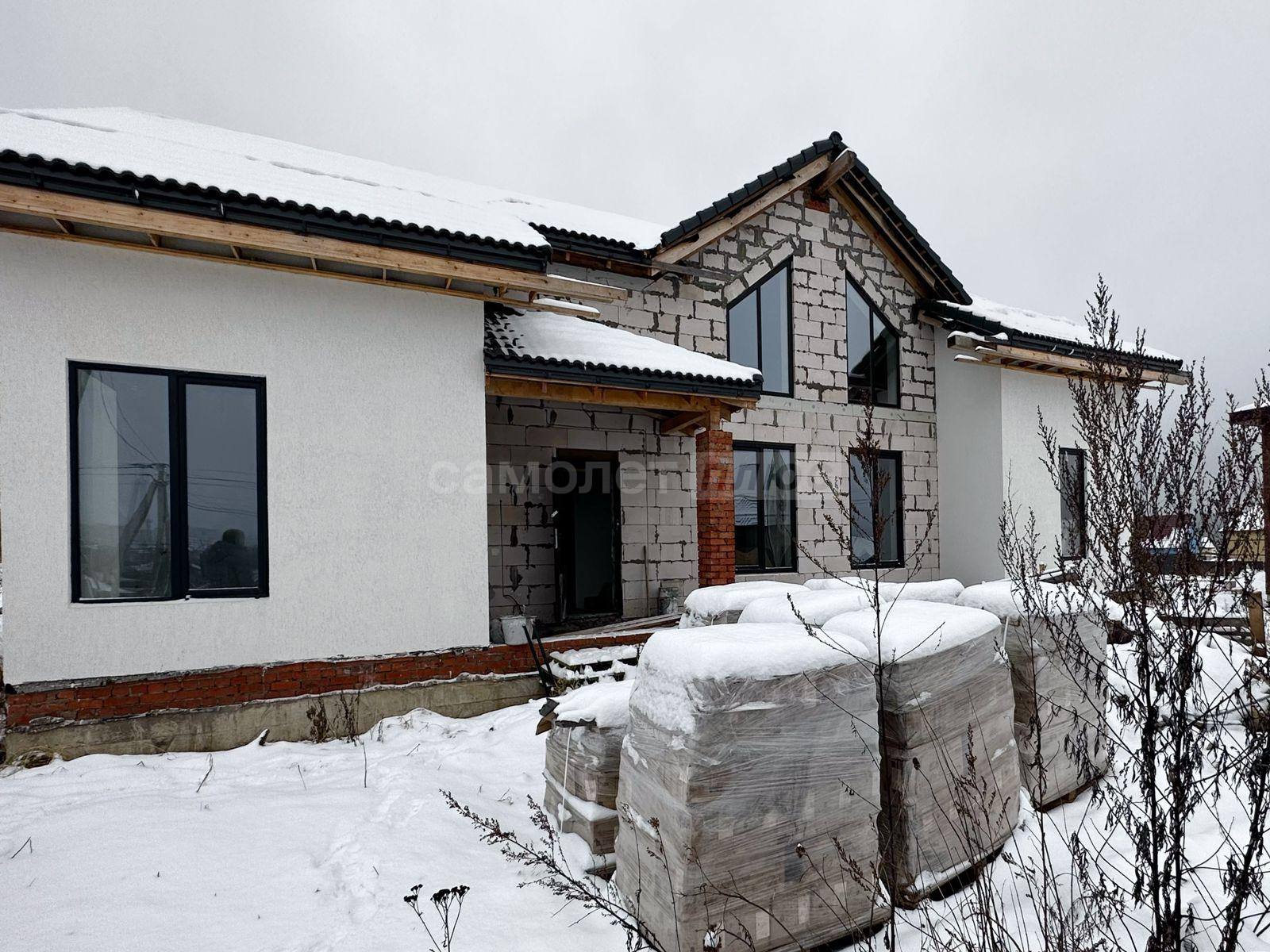 В дом заведены центральное водоснабжение, газ, электричество. В доме сделана разводка всего: водоснабжения, канализации, электричества. Распаечные пробки стоят. Декоративный камень для выкладки фасада куплен. Штукатурка для отделки цоколя- мраморная крошка тоже куплена. Установим хорошую входную дверь, если покупателю это будет необходимо.