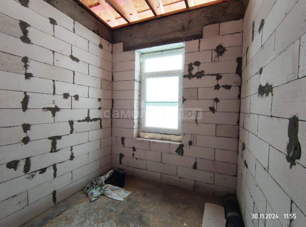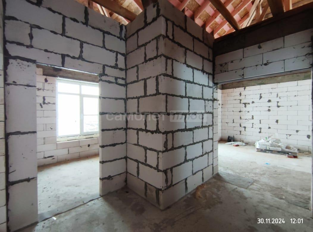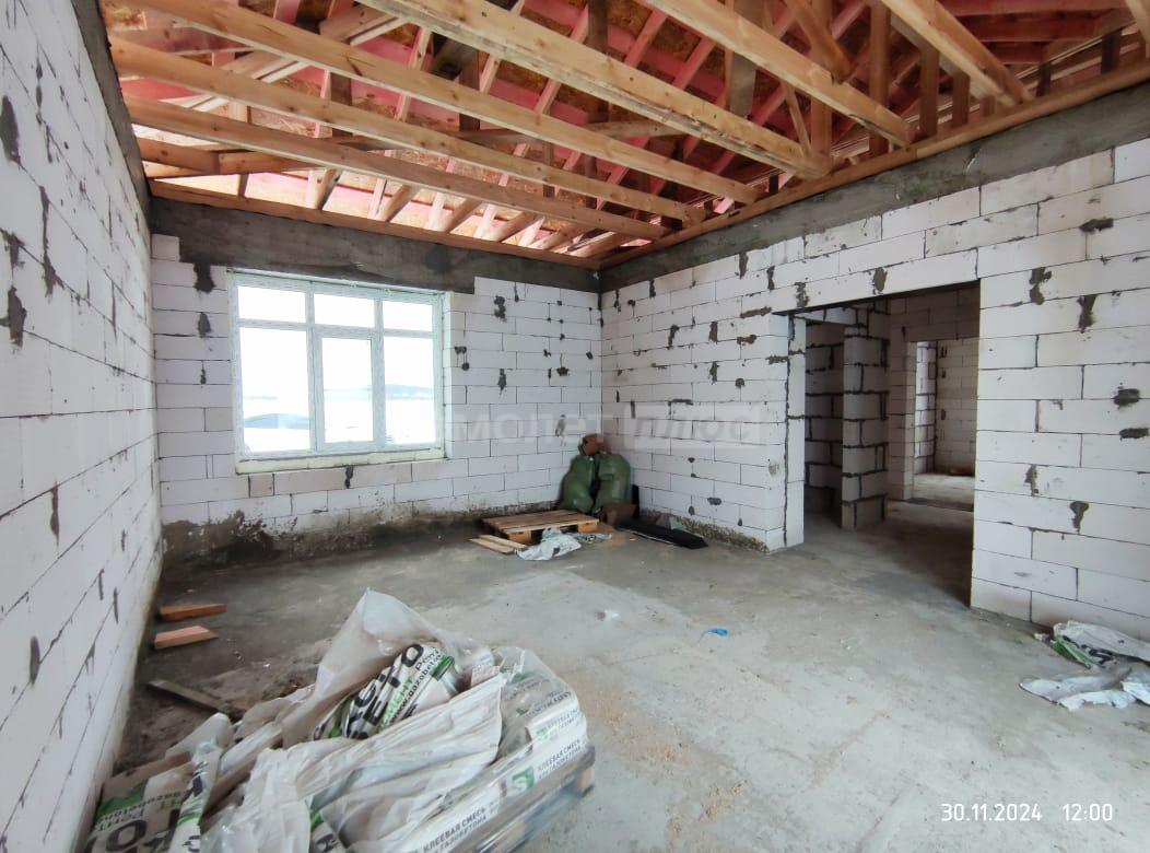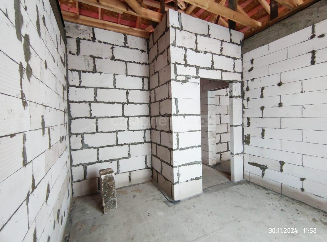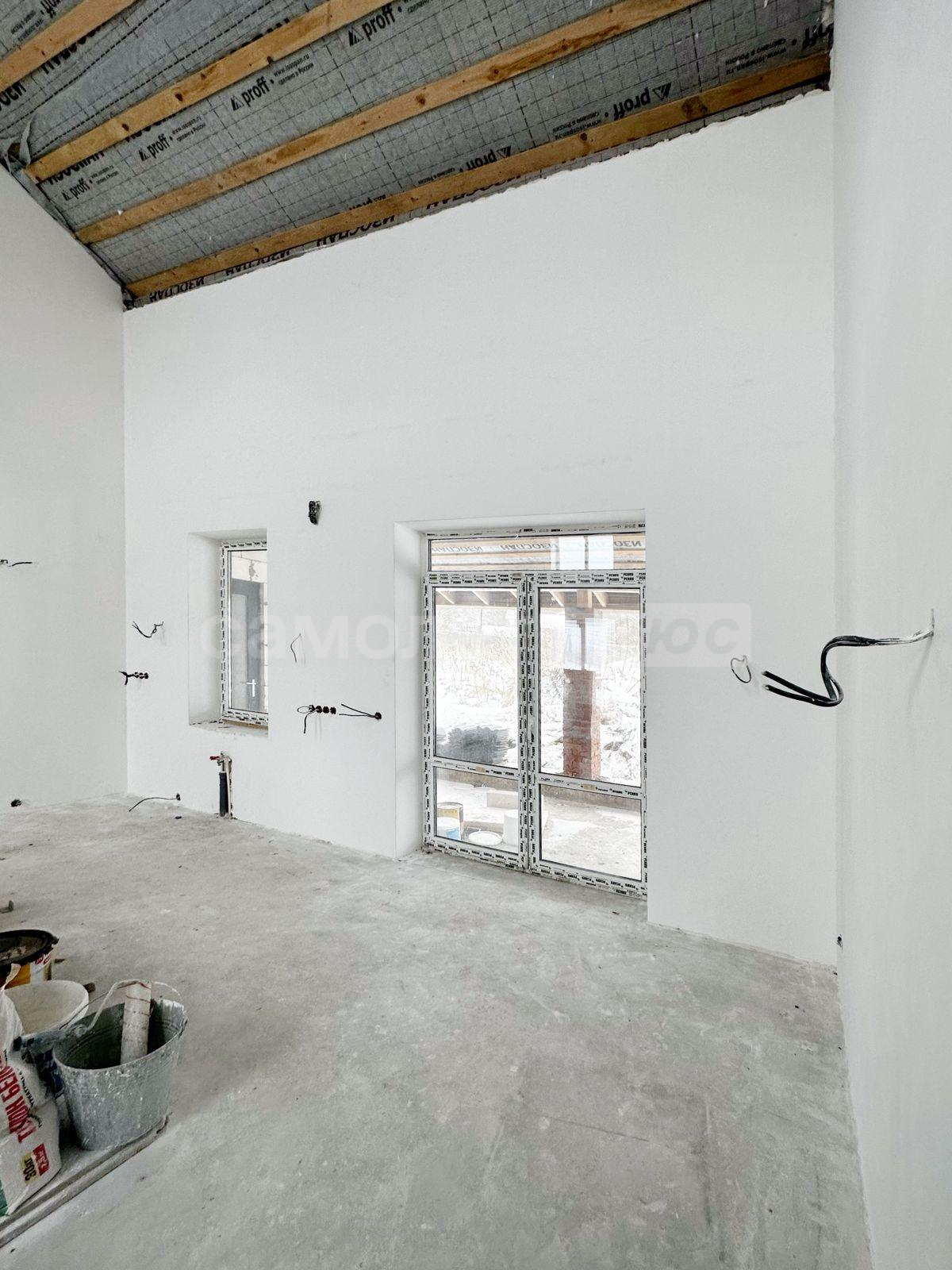 В дом заведены центральное водоснабжение, газ, электричество. В доме сделана разводка всего: водоснабжения, канализации, электричества. Распаечные пробки стоят. Декоративный камень для выкладки фасада куплен. Штукатурка для отделки цоколя- мраморная крошка тоже куплена. Установим хорошую входную дверь, если покупателю это будет необходимо.