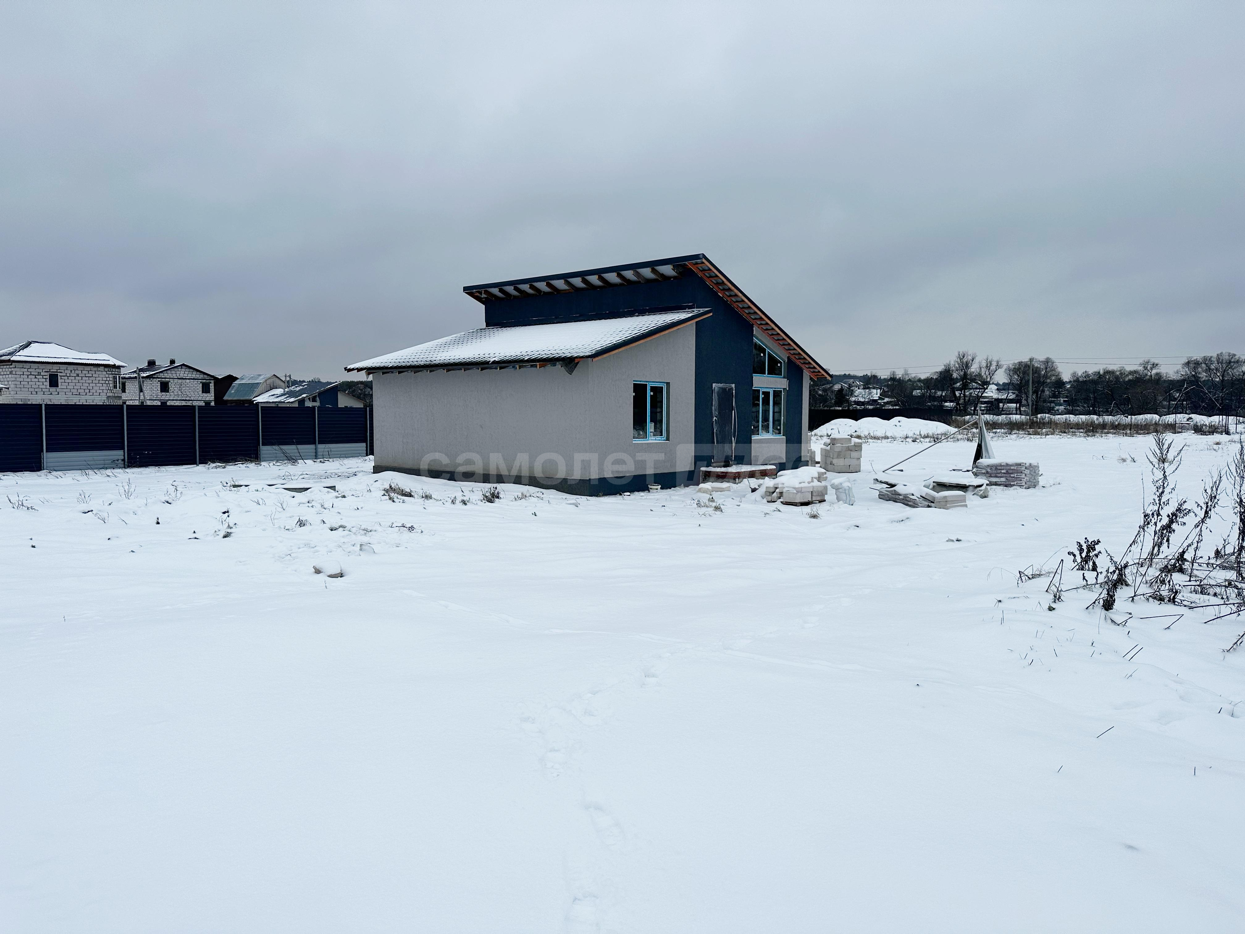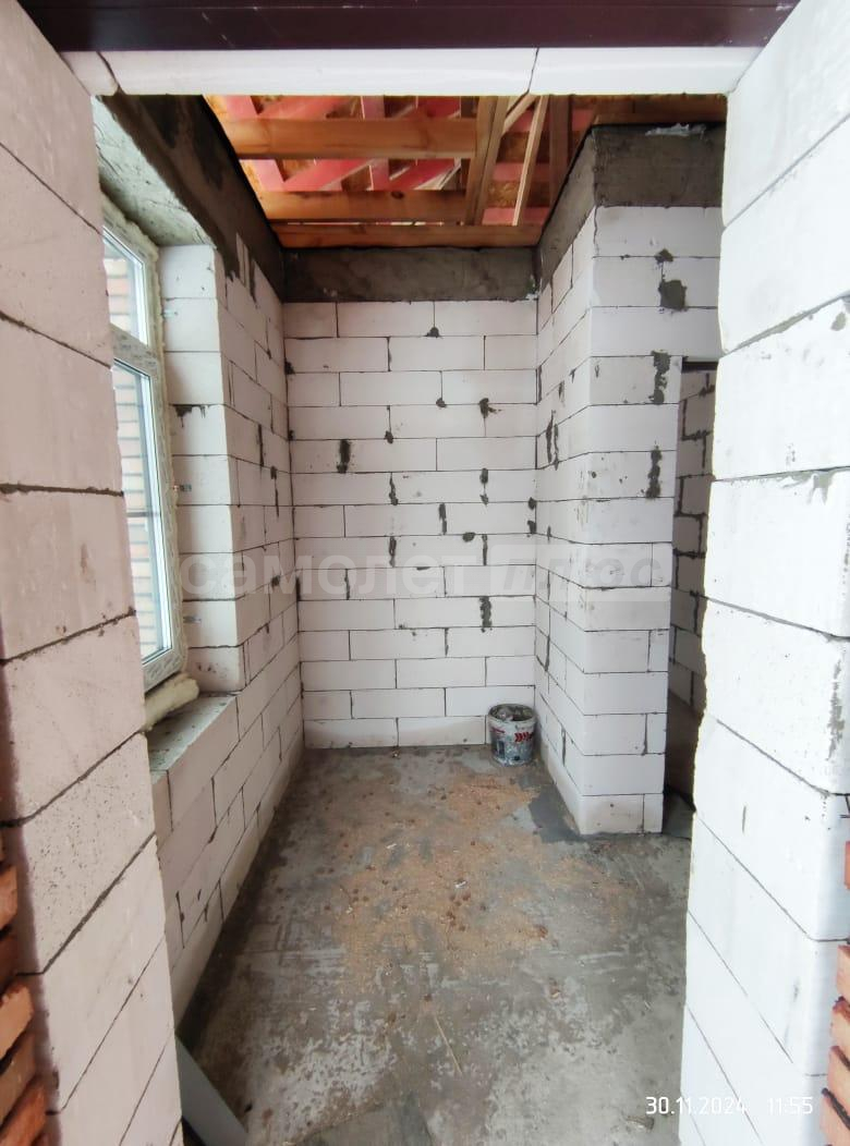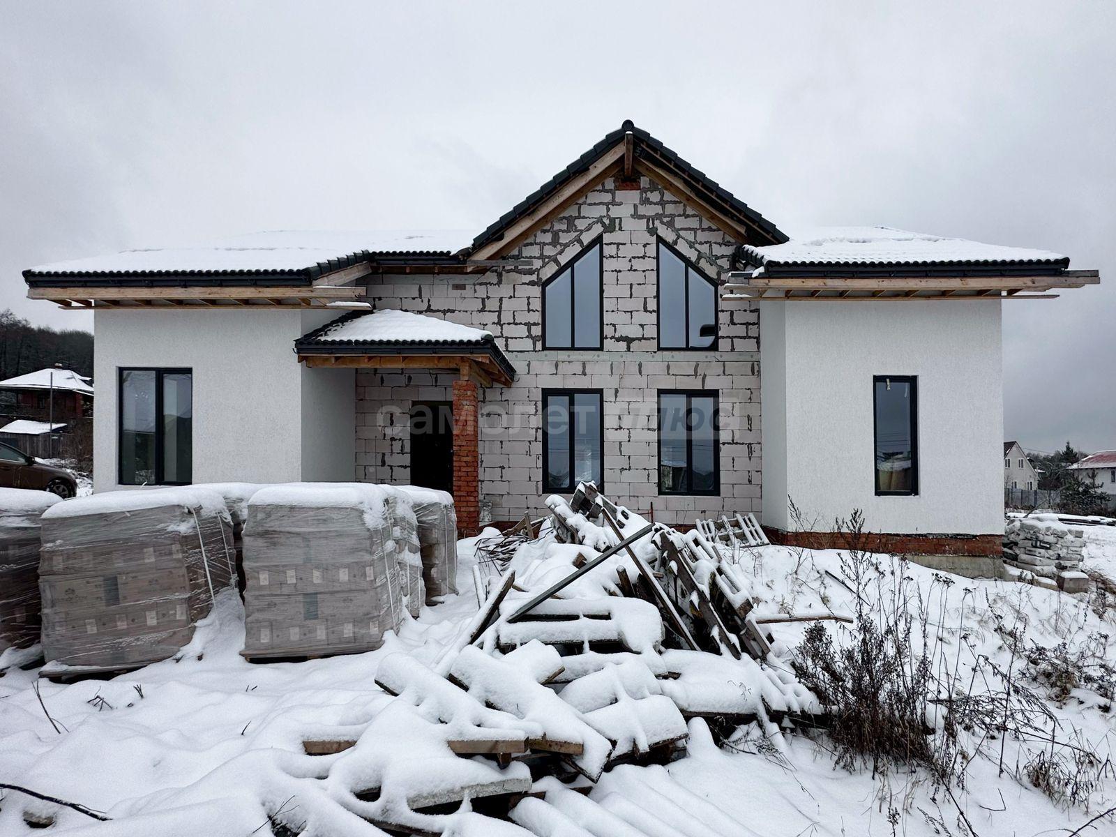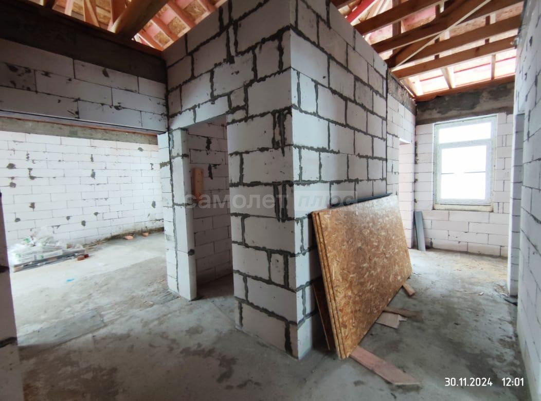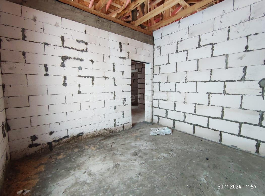 В дом заведены центральное водоснабжение, газ, электричество. В доме сделана разводка всего: водоснабжения, канализации, электричества. Распаечные пробки стоят. Декоративный камень для выкладки фасада куплен. Штукатурка для отделки цоколя- мраморная крошка тоже куплена. Установим хорошую входную дверь, если покупателю это будет необходимо.