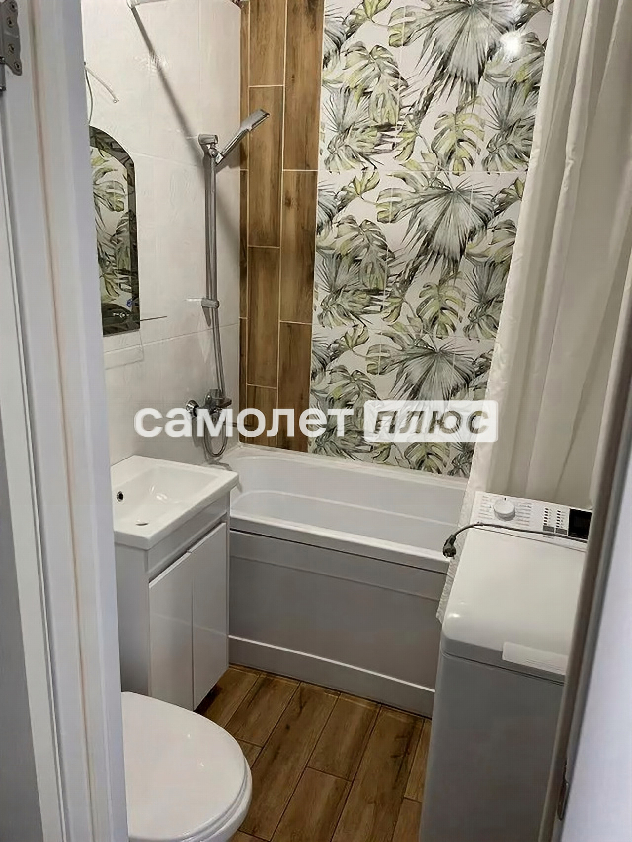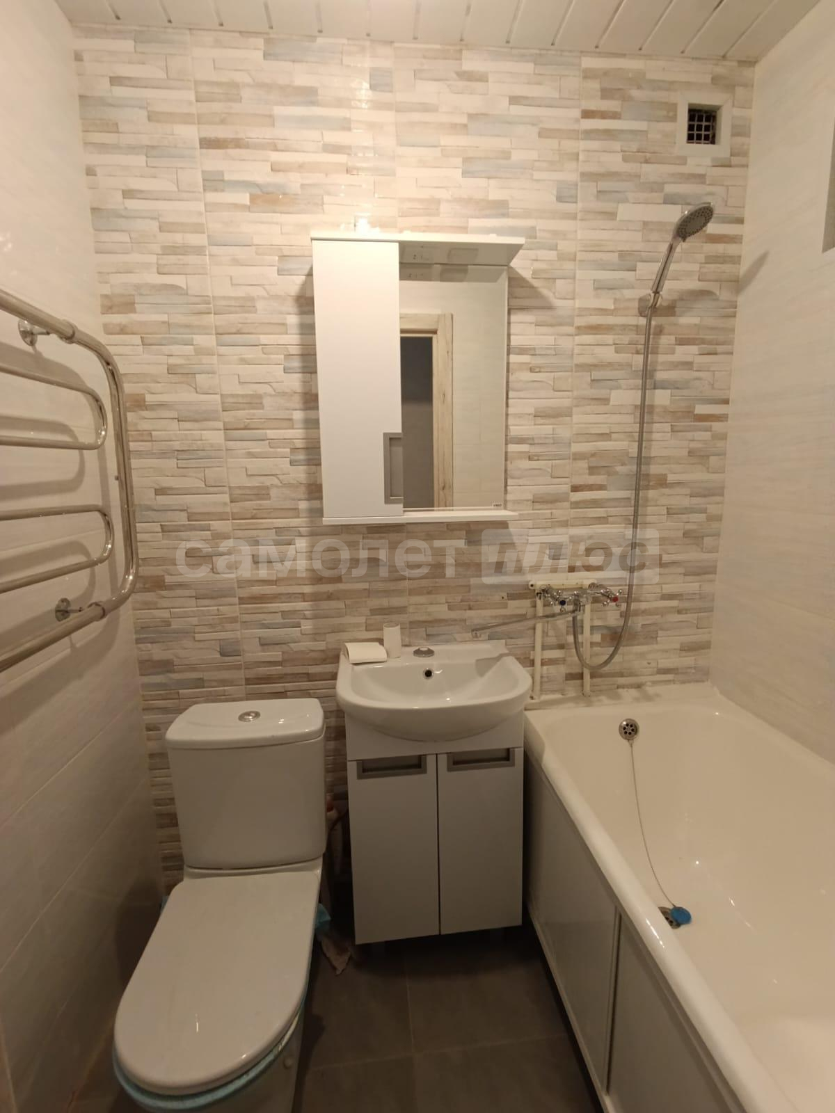 - Стильный совмещенный санузел с местом для организации дополнительного хранения.