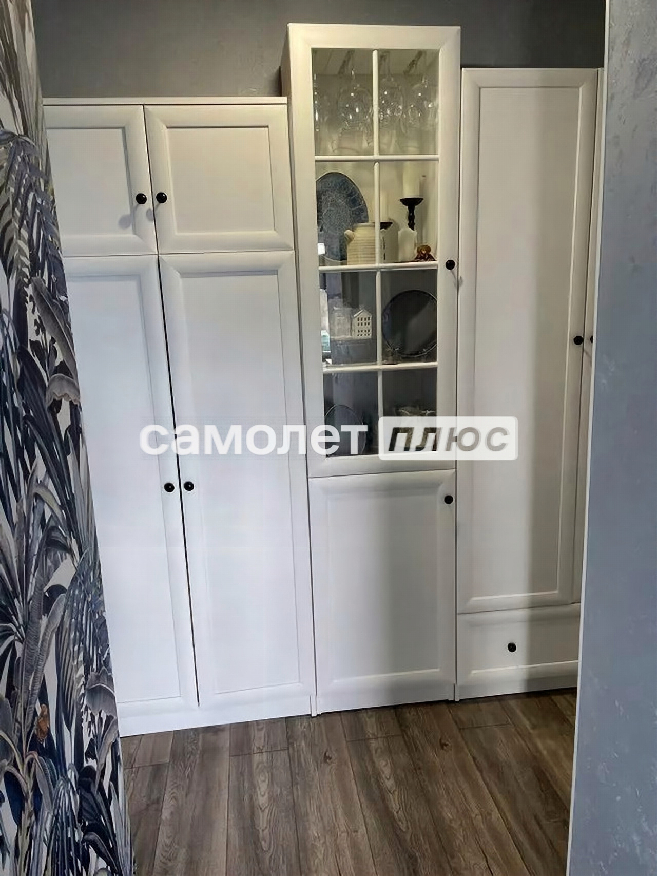 В комнате стоят шкаф,кухонная мебель (все остается)