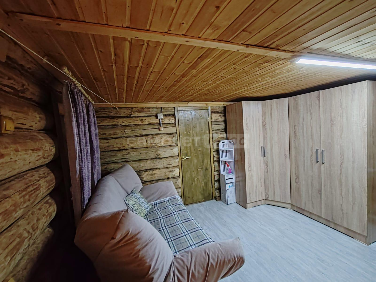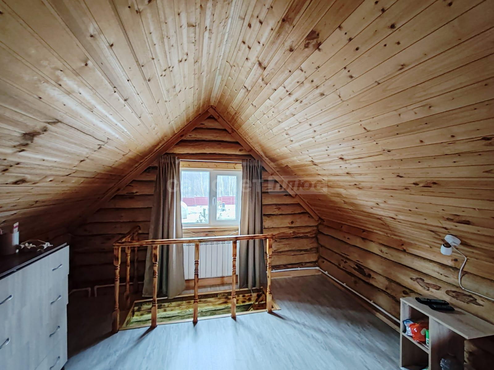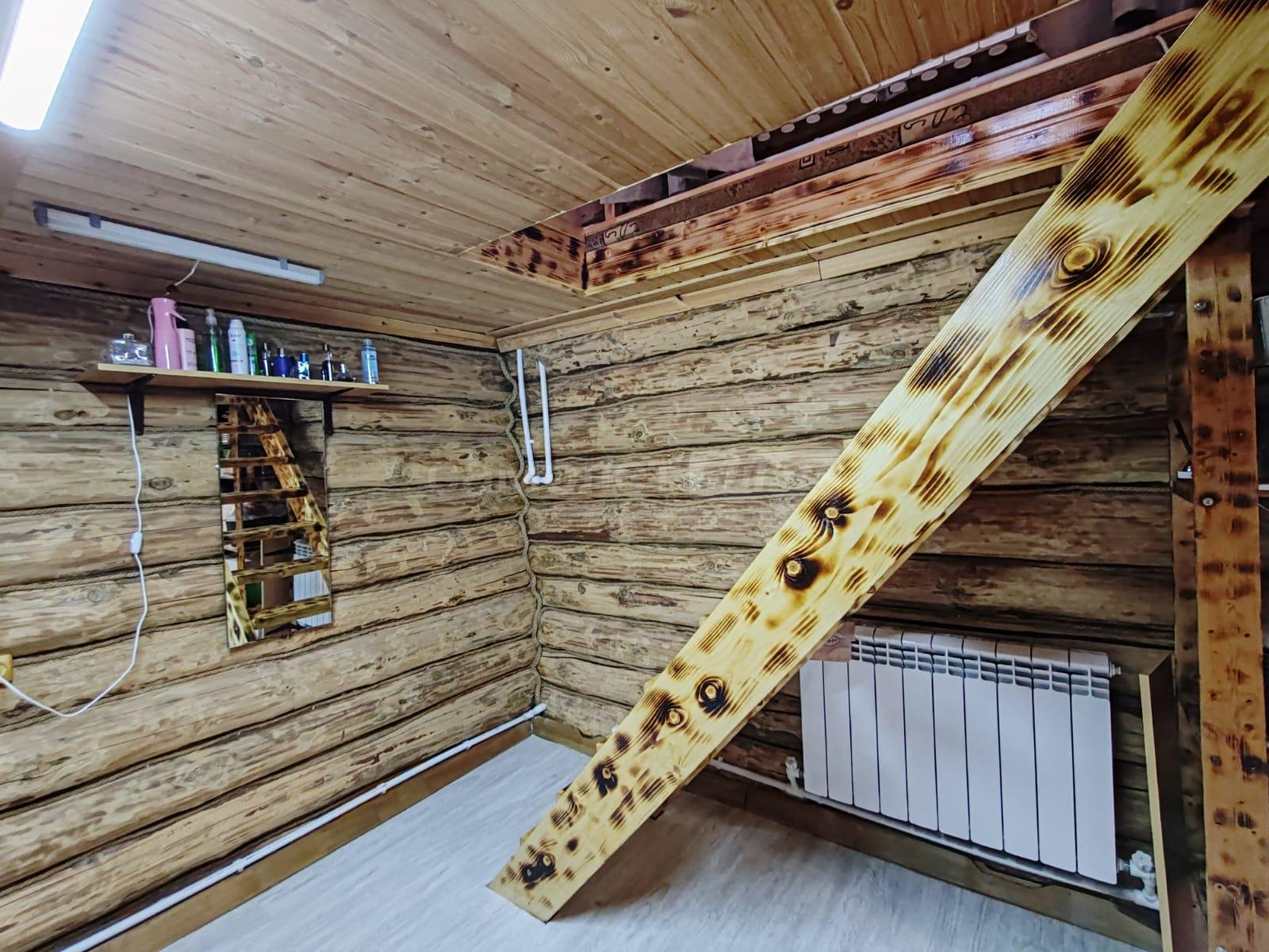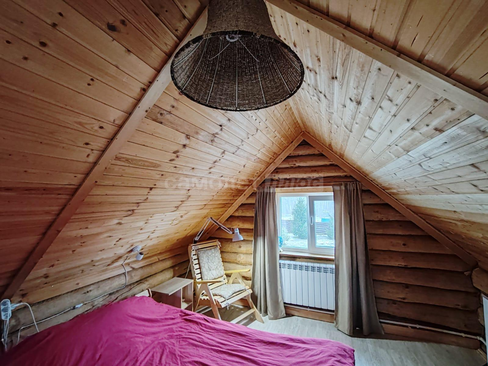 Площадь дома составляет 58, 2 квадратных метра. Дом построен из бревна на ленточном фундаменте. Внутри сделан ремонт на 2х этажах. На первом этаже расположена кухня, комната отдыха, санузел, на 2-м этаже спальня с прекрасным видом на ухоженный участок и на природу. В доме проведено отопление на дровах и электричестве. Установлен септик. Также имеется хозблок, с рабочим местом, дровник. Дом обшит сайдингом.
