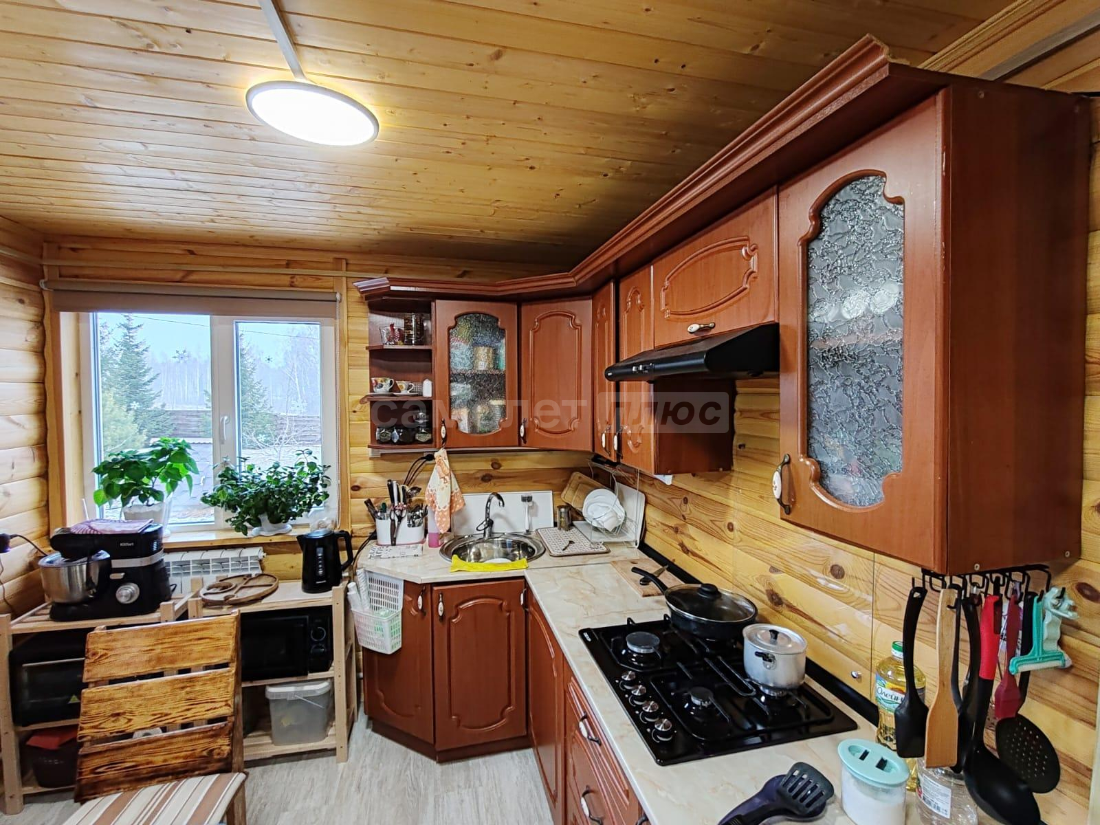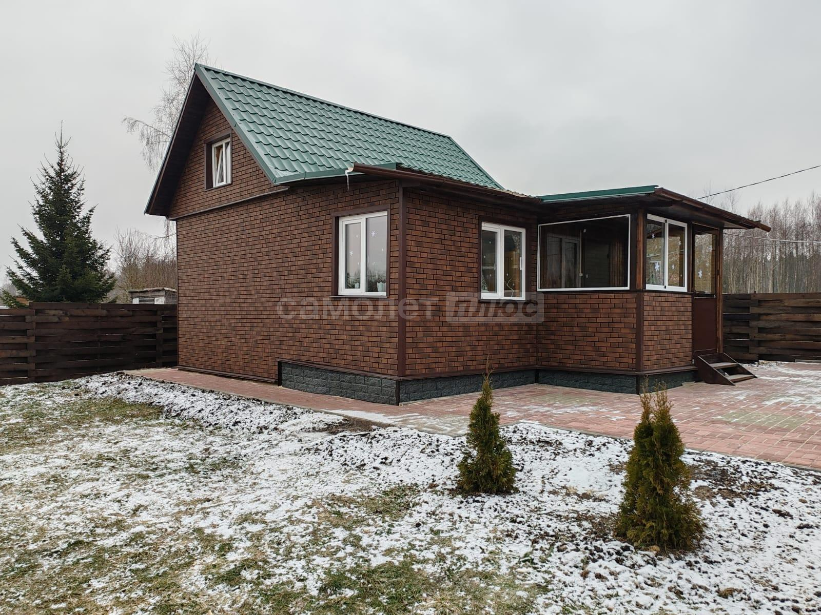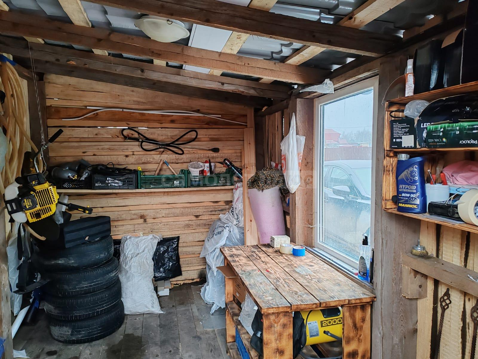 Площадь дома составляет 58, 2 квадратных метра. Дом построен из бревна на ленточном фундаменте. Внутри сделан ремонт на 2х этажах. На первом этаже расположена кухня, комната отдыха, санузел, на 2-м этаже спальня с прекрасным видом на ухоженный участок и на природу. В доме проведено отопление на дровах и электричестве. Установлен септик. Также имеется хозблок, с рабочим местом, дровник. Дом обшит сайдингом.