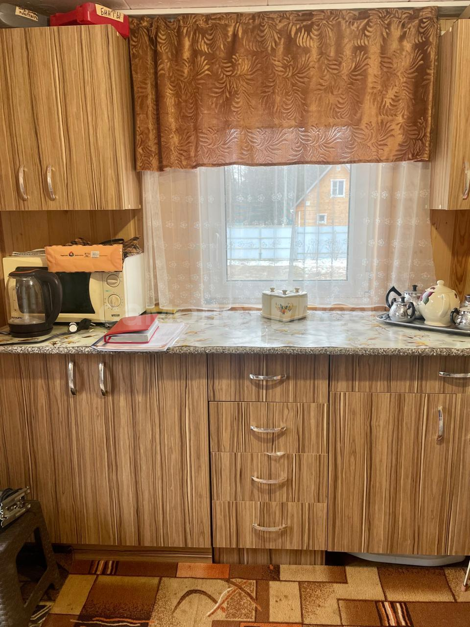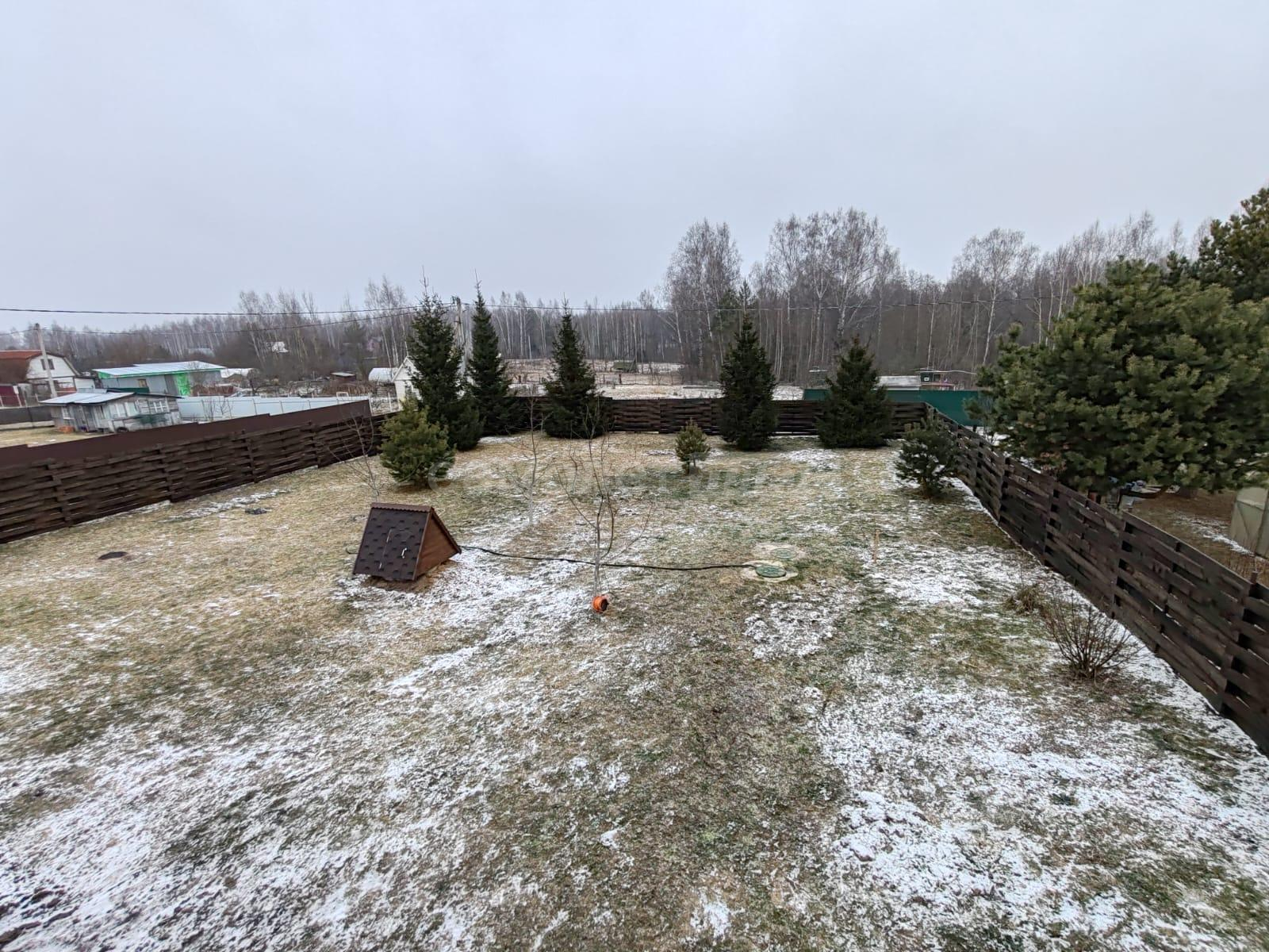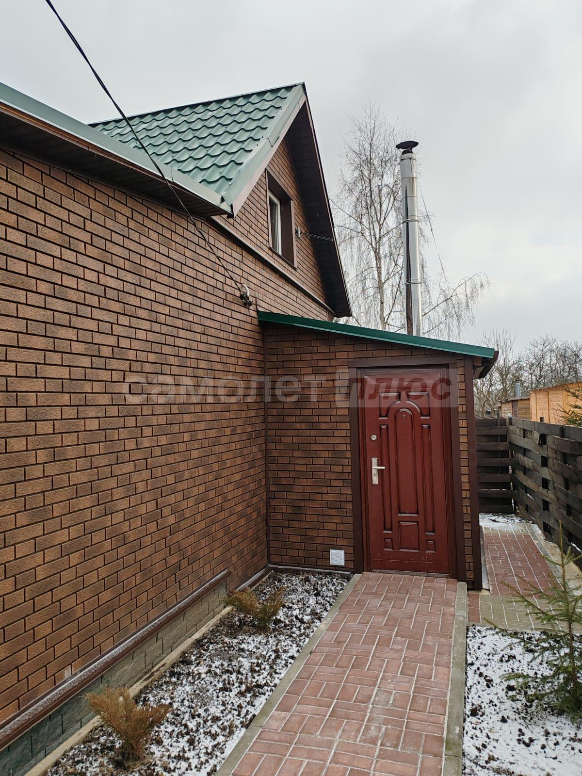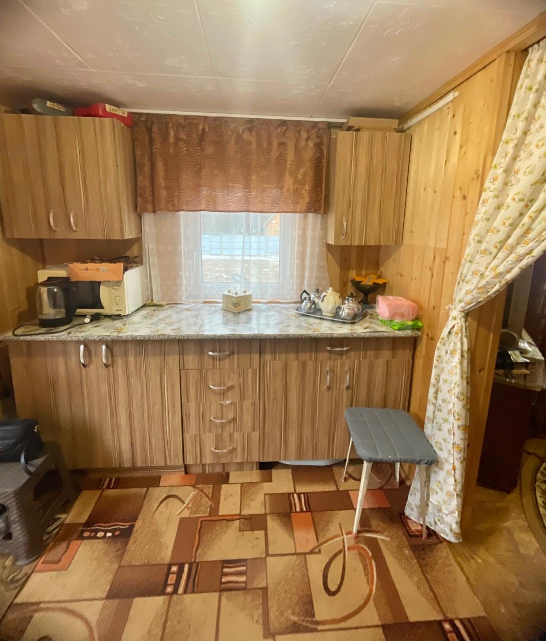 Площадь дома составляет 58, 2 квадратных метра. Дом построен из бревна на ленточном фундаменте. Внутри сделан ремонт на 2х этажах. На первом этаже расположена кухня, комната отдыха, санузел, на 2-м этаже спальня с прекрасным видом на ухоженный участок и на природу. В доме проведено отопление на дровах и электричестве. Установлен септик. Также имеется хозблок, с рабочим местом, дровник. Дом обшит сайдингом.