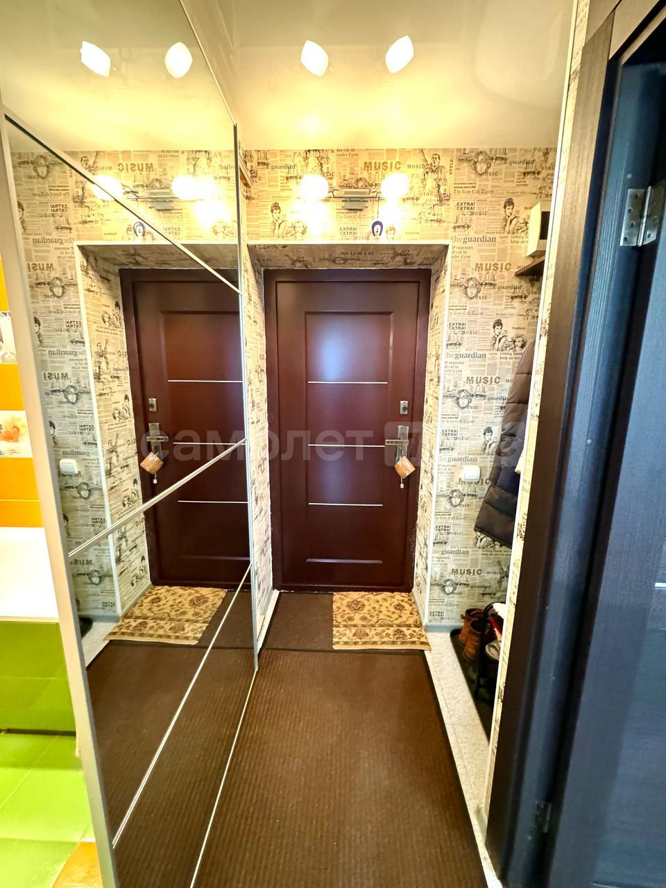 Общий коридор просторный, а на этаже установлен домофон, обеспечивающий дополнительную безопасность.