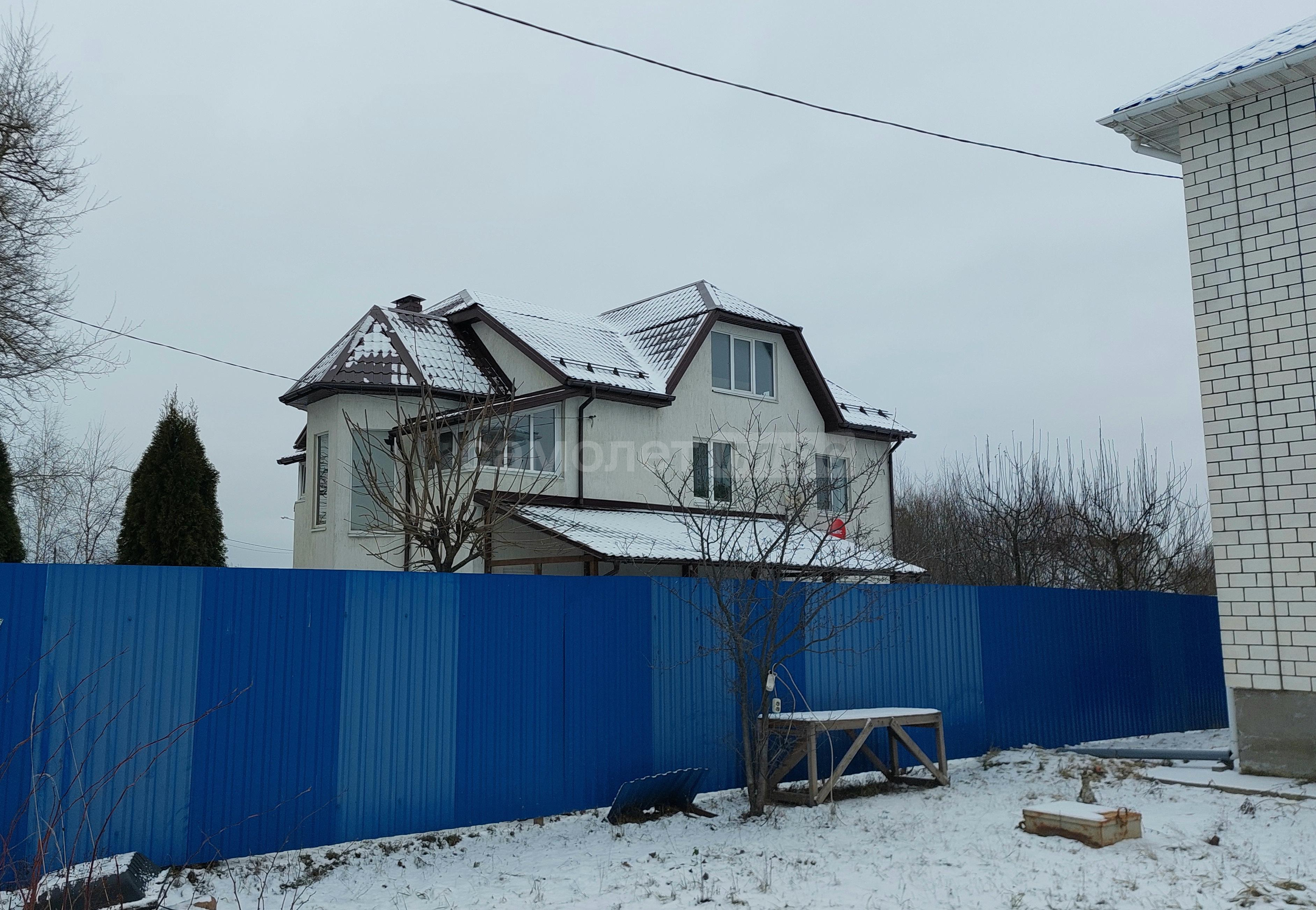 Дом расположена на участке 10 соток. Участок ровный правильной прямоугольной формы. На участке имеется большое парковочное место на шесть машин, выложенное брусчаткой, откатные ворота с пульта. На участке посажены плодовые деревья с обильным урожаем яблонь, груш, а также кусты смородины, малины.