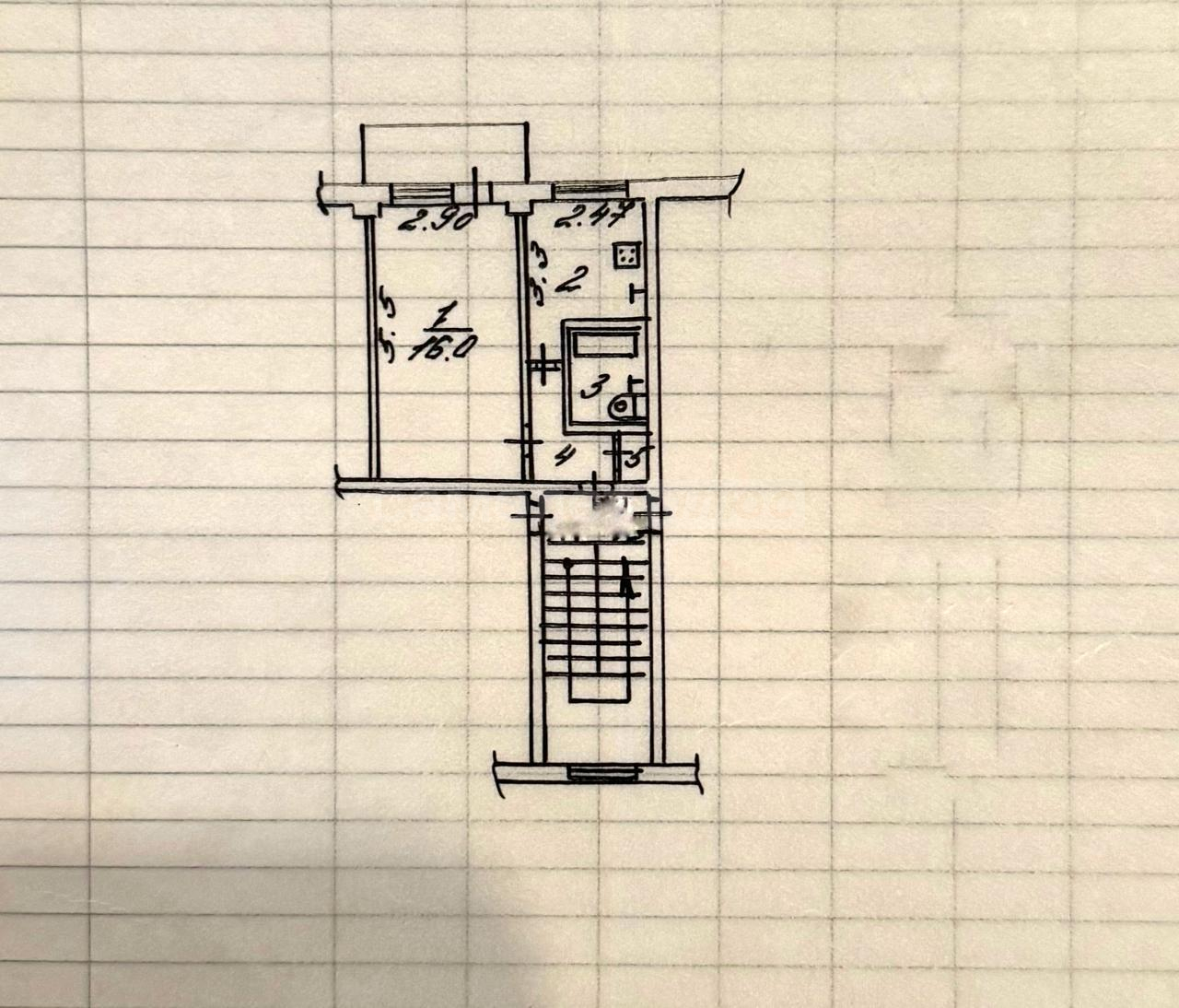 Площадь 29,5 кв.м., комната 16,0 кв.м, кухня 6,7 кв.м.