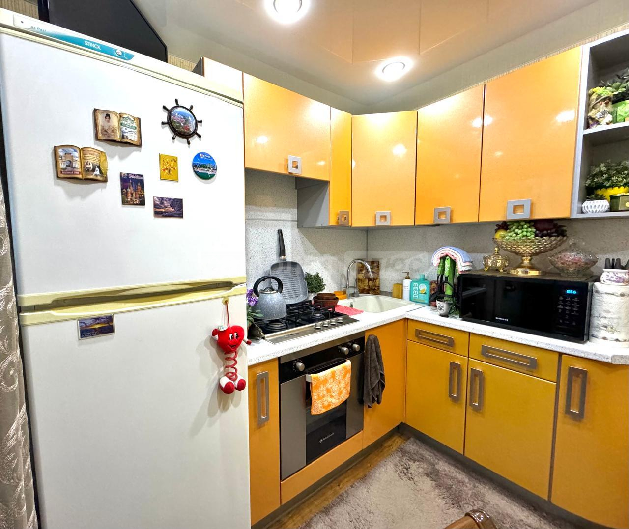 Квартира имеет просторную кухню площадью 9 кв.м., с новой газовой плитой и холодильником и не менее просторную комнату площадью 18 кв. м. с удобной планировкой, где располагается уютный диван!