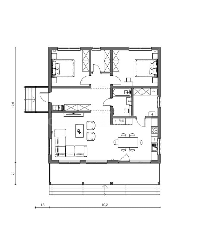 - 2 спальни, кладовая, санузел, техпомещение- великолепная продуманная планироовка!