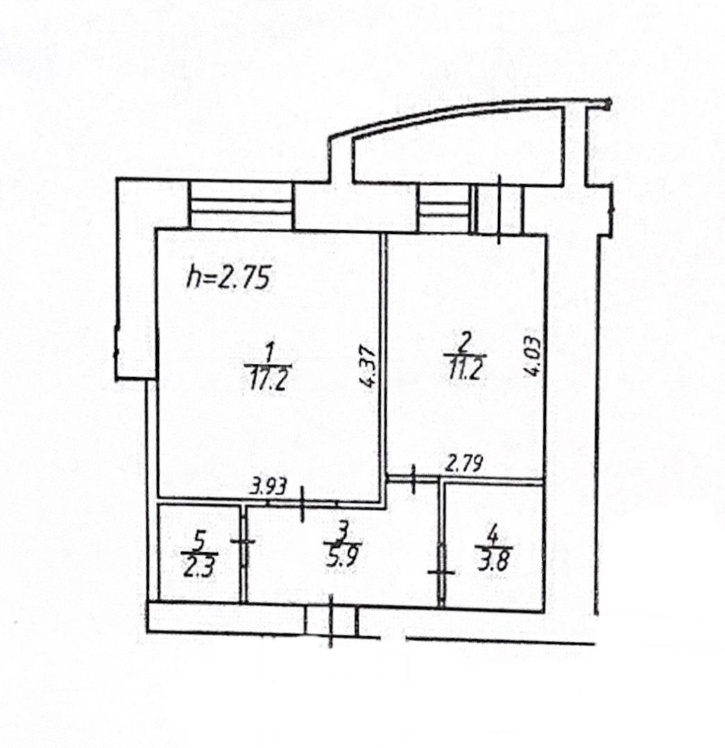 Общая площадь квартиры 40,4 кв. м, комната - 17,2 кв. м, кухня - 11,2 кв. м., остекленная лоджия — 3,9 кв. м. Высота потолка - 2,75 метра.