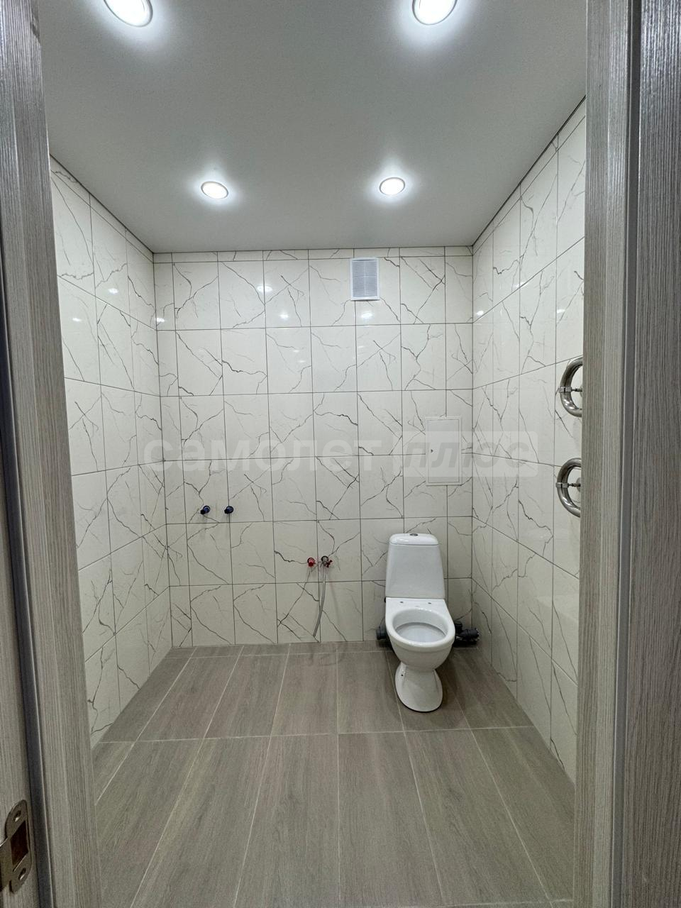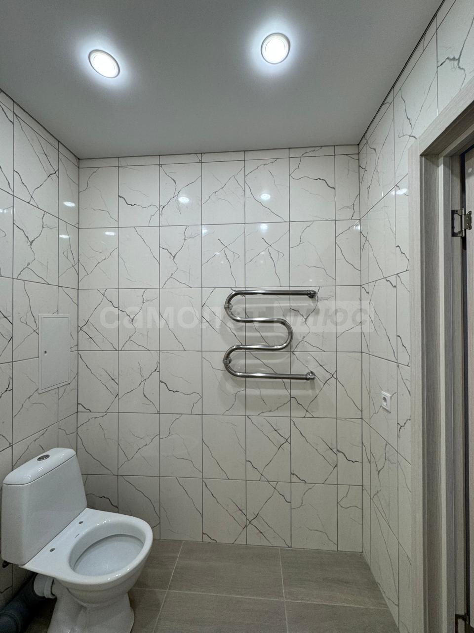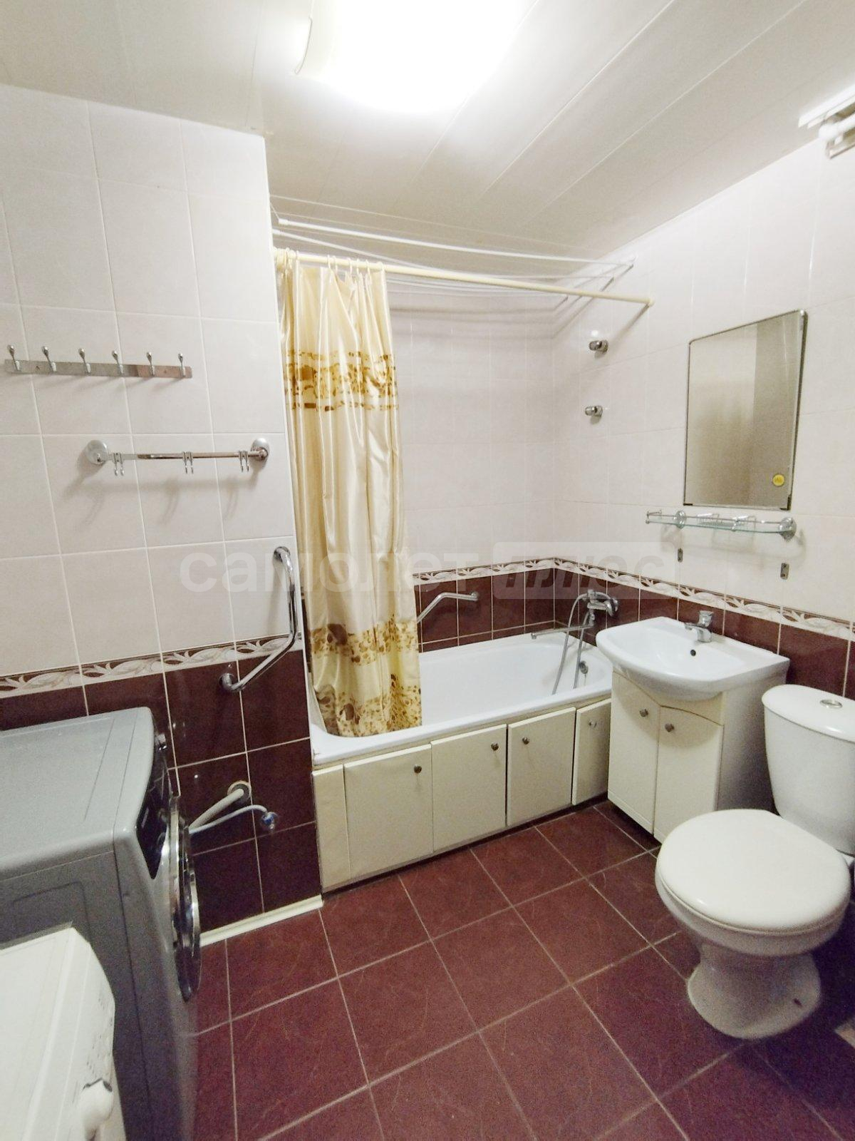 Ванна комната выложена плиткой лаконичный цветов. отдельная розетка под стиральную машину внизу. Под ванной идут трубы от полотенцесушителя, что обеспечивает постоянный подогрев акриловой ванны в зимнее время года. Полотенцесушитель выполнен по немецкой системе by pass (можно включать и отключать, не завися от соседей). Электрическая вентиляция. Туалет выложен плиткой в одной цветовой гамме с ванной комнатой. Есть гигиенический душ. Так же имеется розетка.