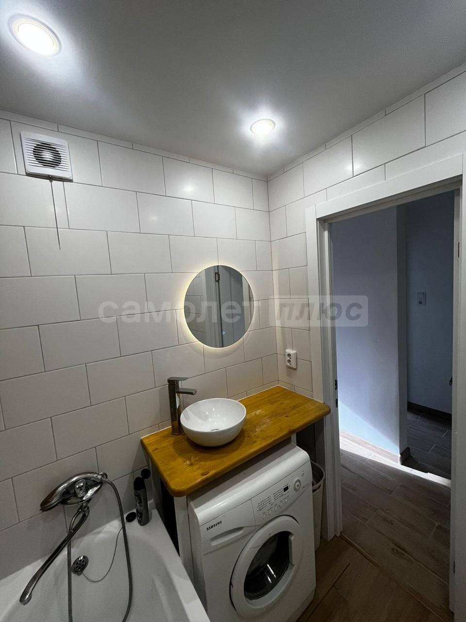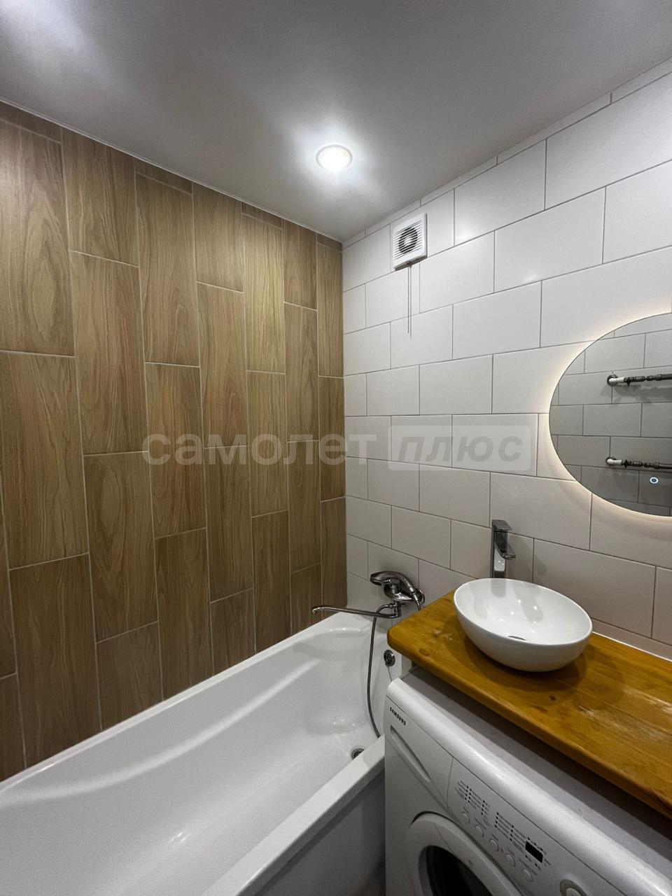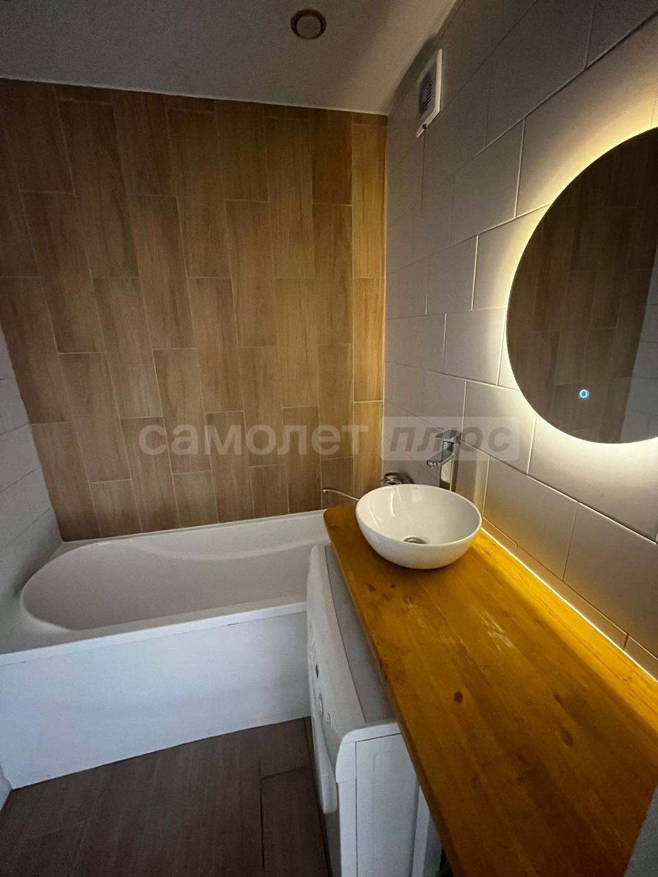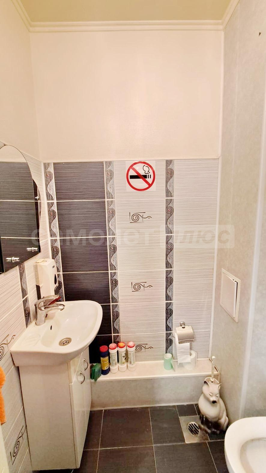 Ванна комната выложена плиткой лаконичный цветов. отдельная розетка под стиральную машину внизу. Под ванной идут трубы от полотенцесушителя, что обеспечивает постоянный подогрев акриловой ванны в зимнее время года. Полотенцесушитель выполнен по немецкой системе by pass (можно включать и отключать, не завися от соседей). Электрическая вентиляция. Туалет выложен плиткой в одной цветовой гамме с ванной комнатой. Есть гигиенический душ. Так же имеется розетка.