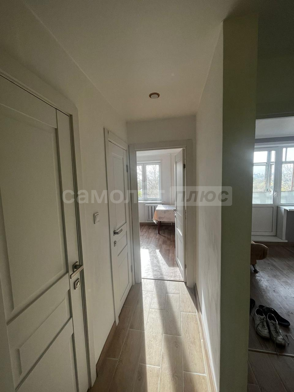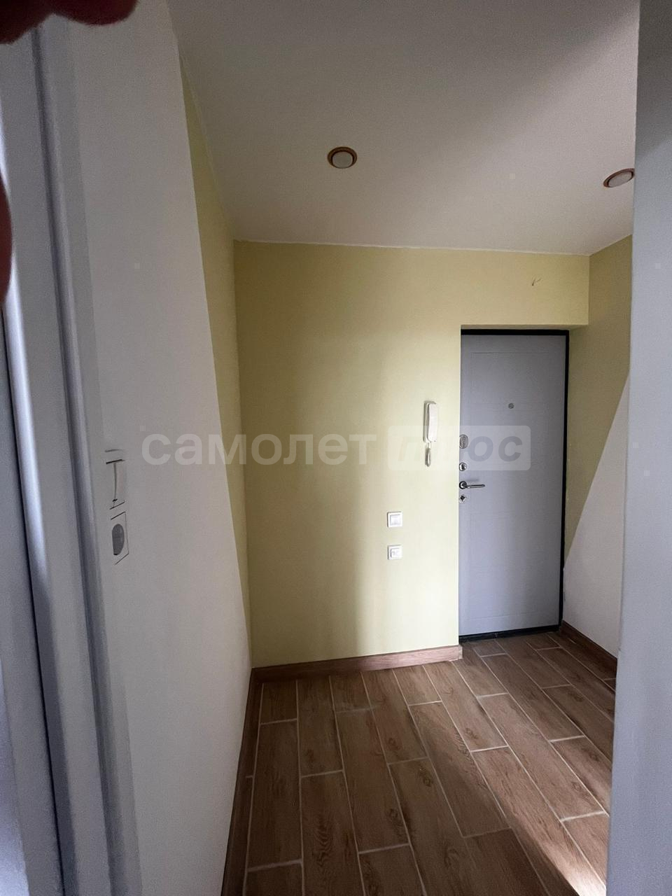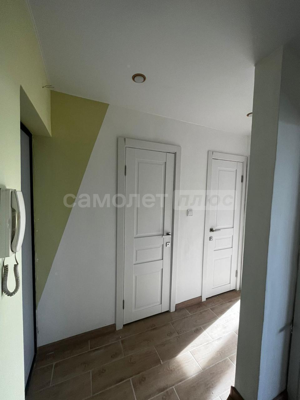 Умный домофон от Ростелекома, с возможностью просмотра записи камер, открытие двери с телефона в приложении. Квартира не угловая.
