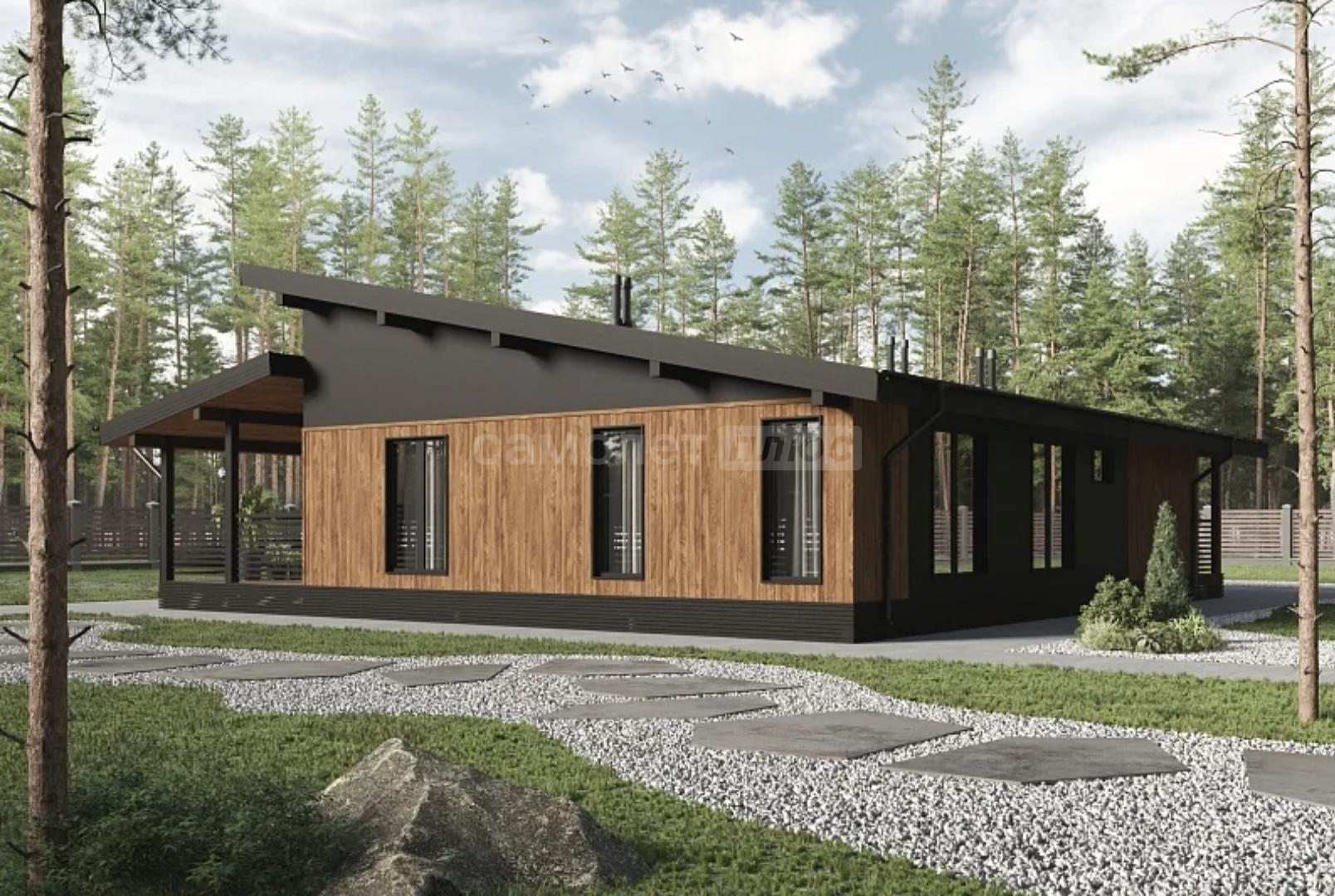 Продается современный дом в закрытом коттеджном поселке в Калуге. Дом общей площадью 145 м² с односкатной крышей, тремя спальнями, просторным крыльцом и крытой террасой. Проект выглядит эффектно и отвечает современным требованиям - чтобы всем членам семьи было комфортно.