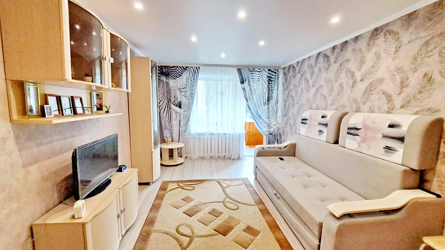 Квартира уютная в комнате и на кухне есть небольшие встроенные шкафы кладовые. Вся мебель на фото остается в квартире.