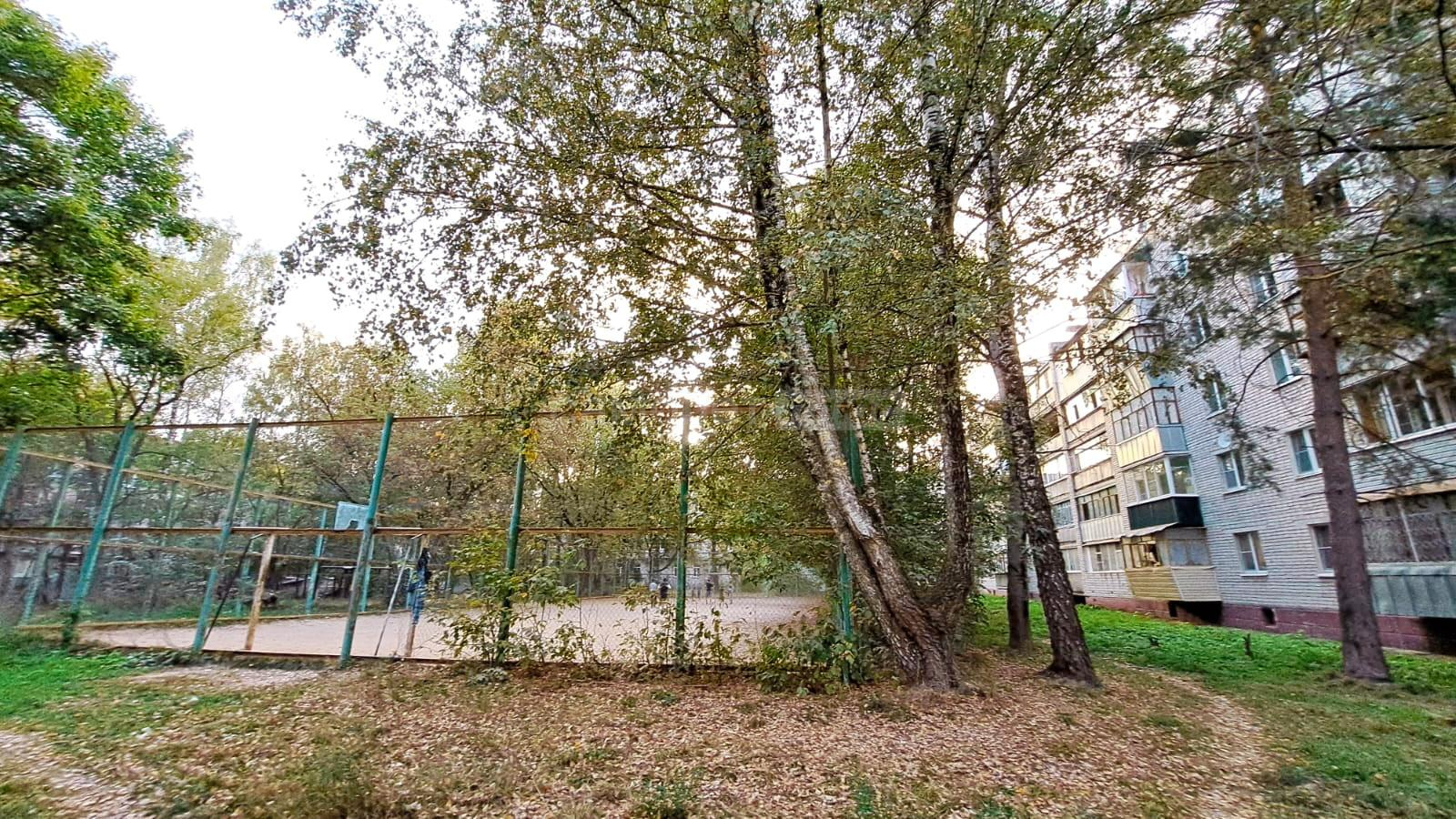 Во дворе детская площадка, парковка для машин, не далеко детский сад, школа.