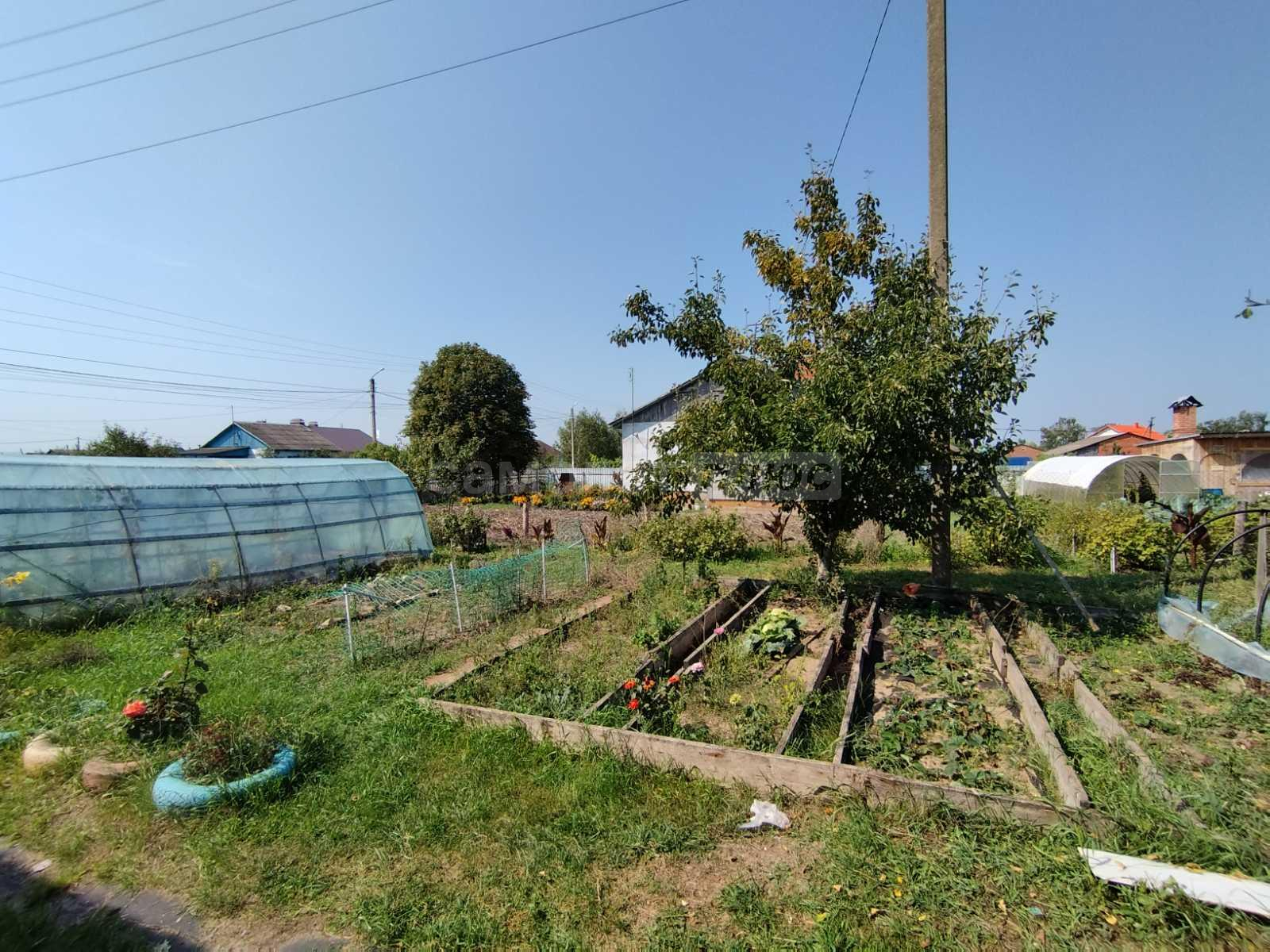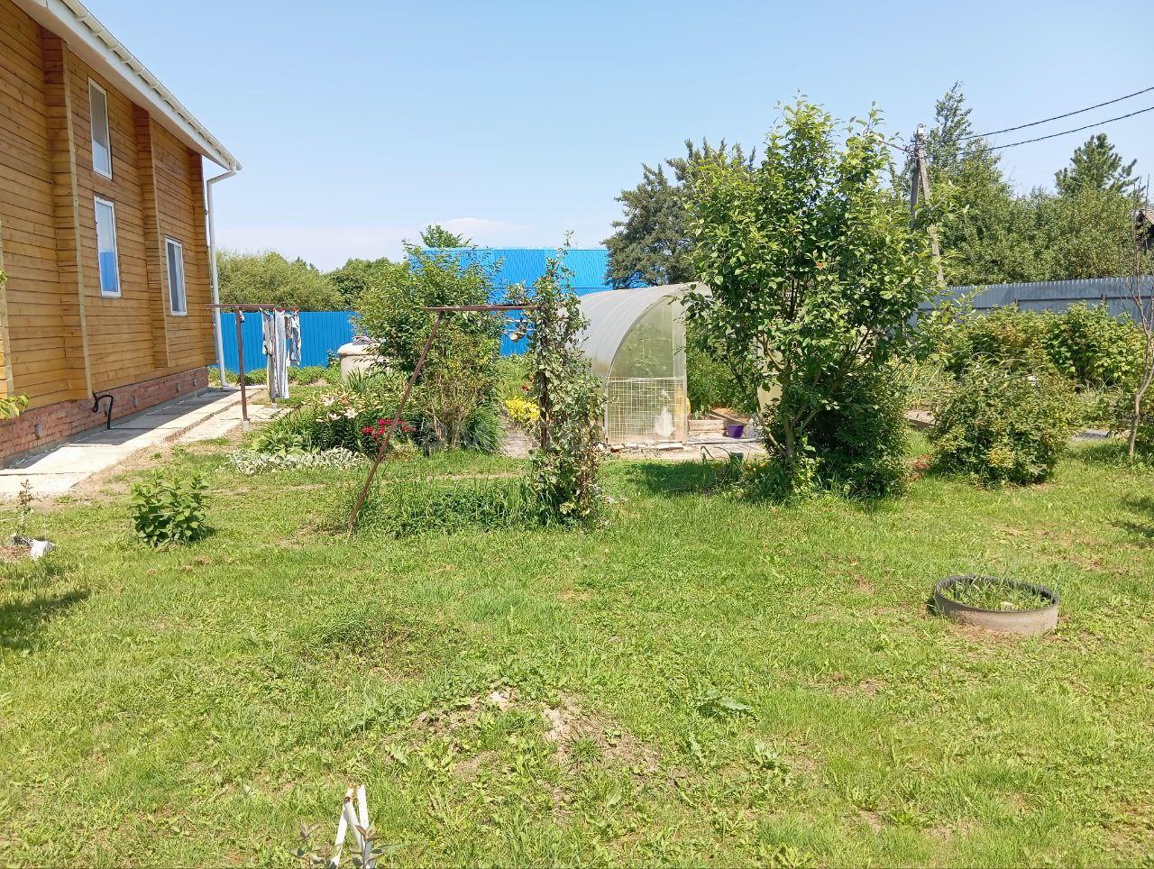 Придомовая территория ухоженная: цветы, парник, плодовые деревья.