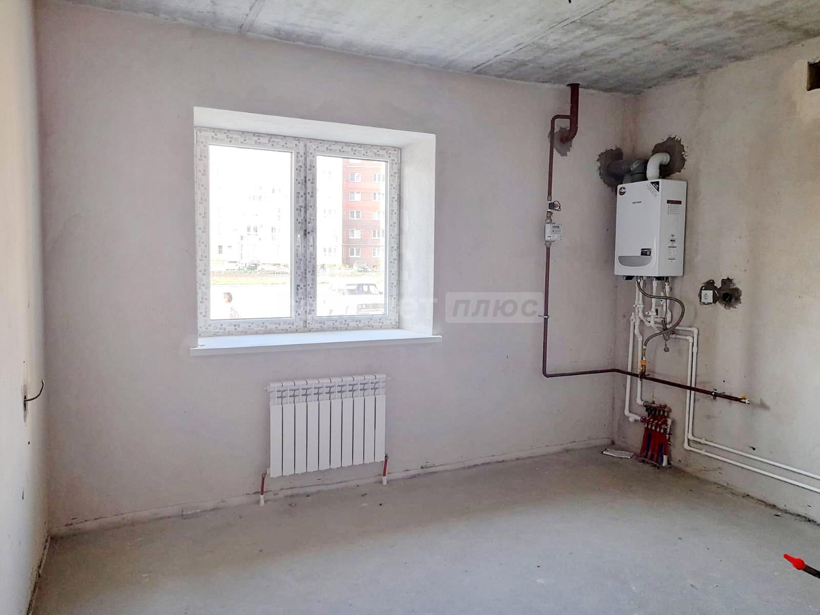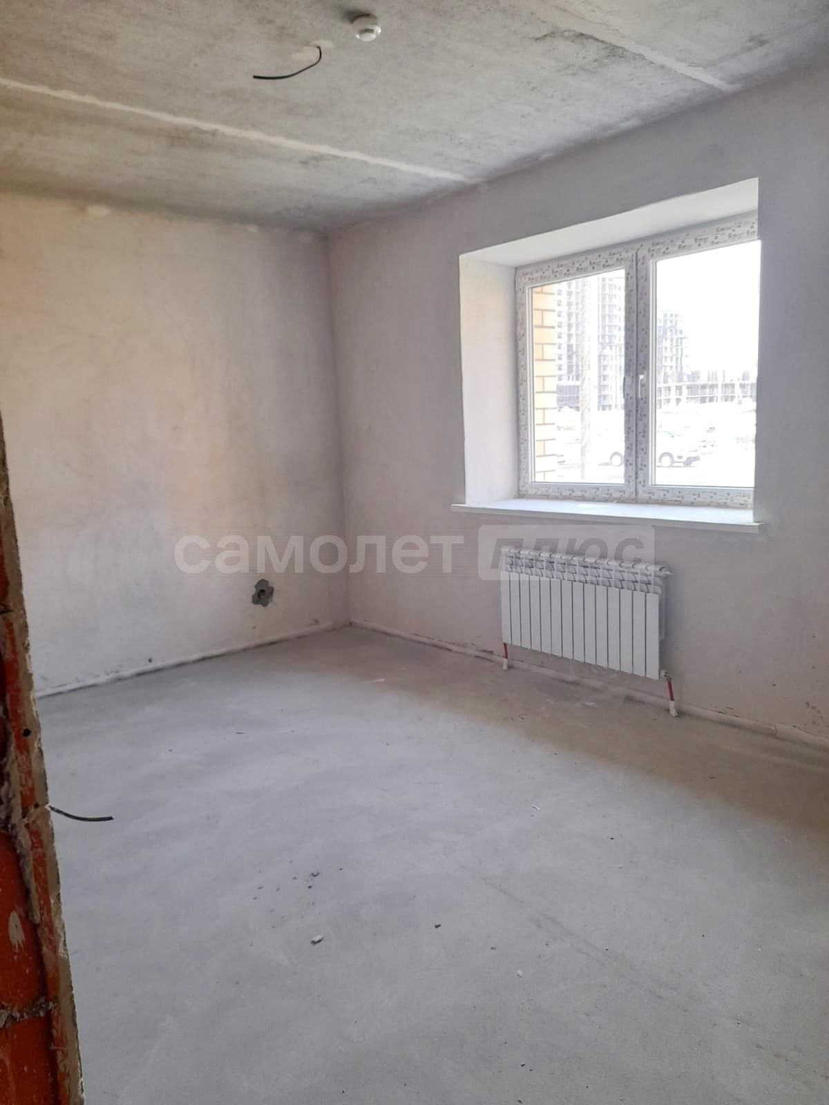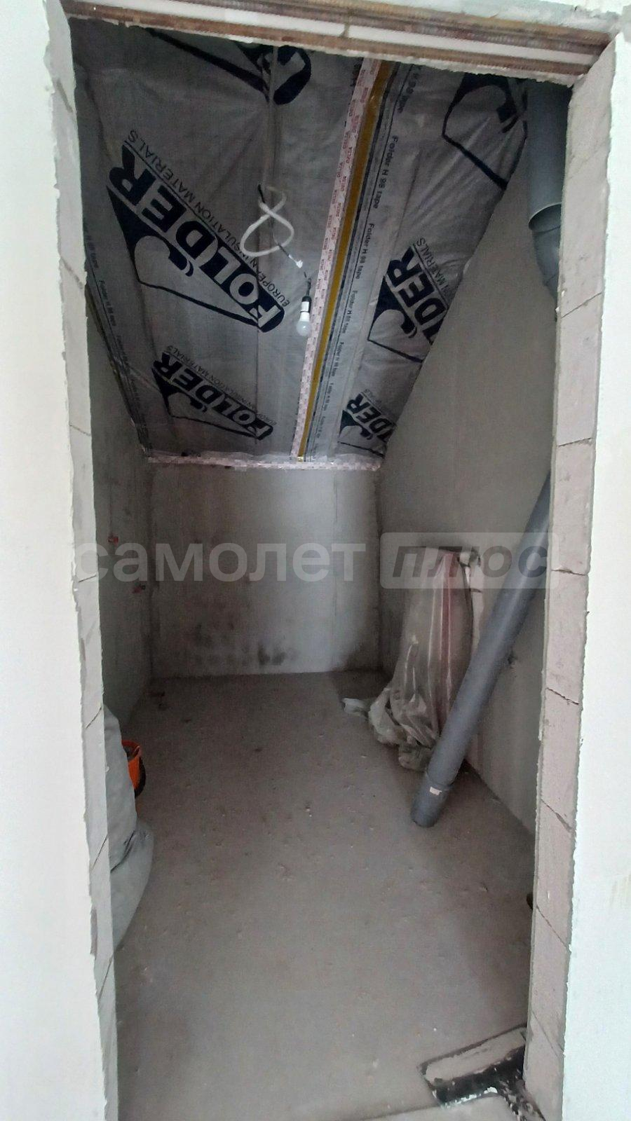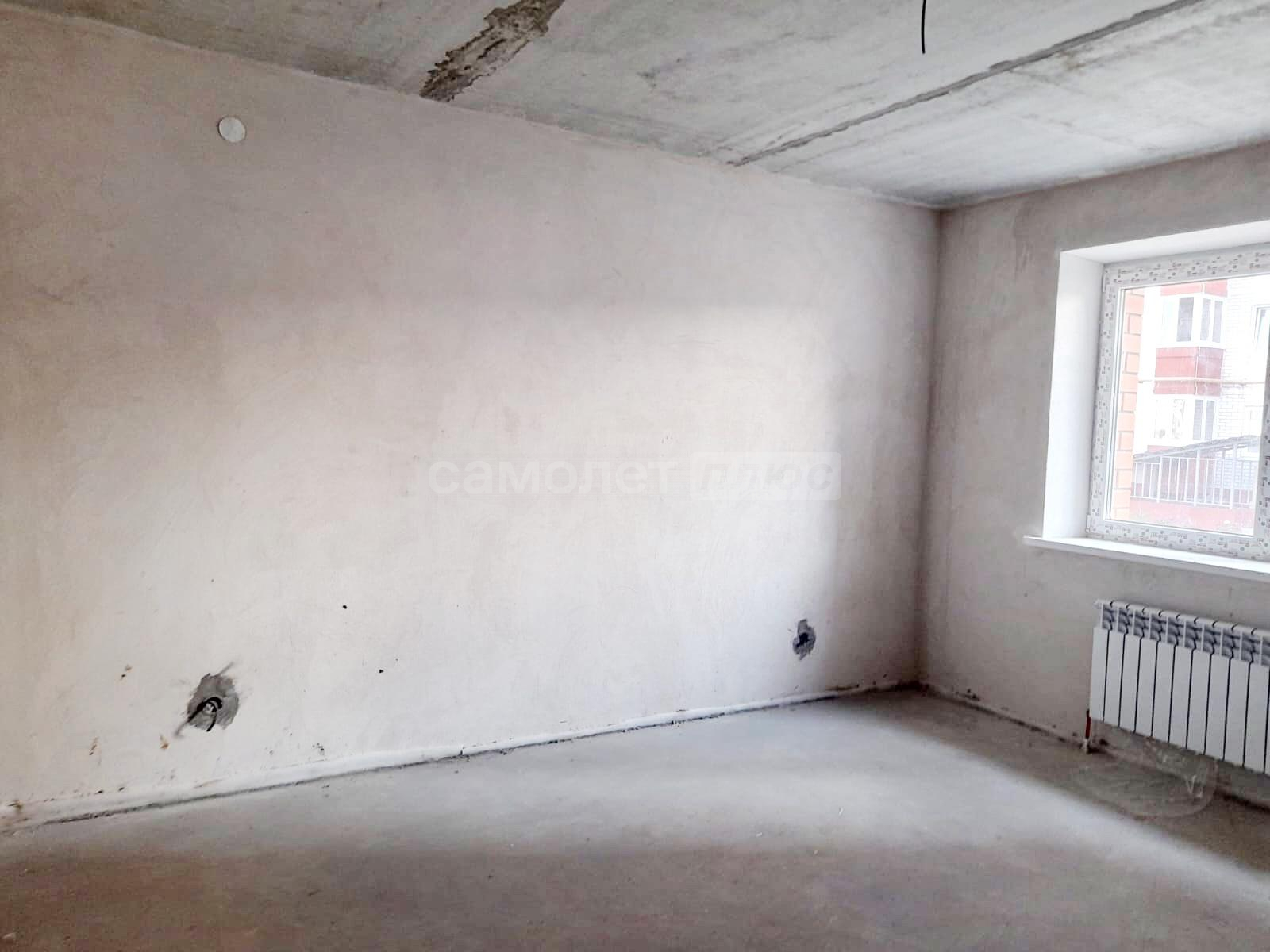 *произведена стяжка пола,стены оштукатурены ,