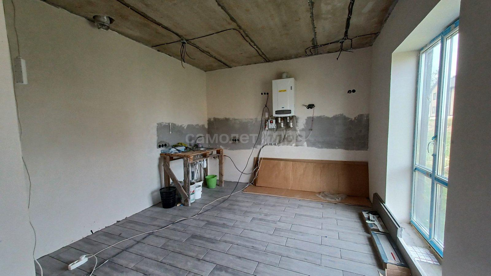 Внутренняя отделка выполнена с использованием штукатурки, шпаклевки под обои. Установлены тёплые полы на первом этаже, на втором этаже - ванна и коридор, 1-ый этаж выложен плиткой. Монолитная лестница с подготовкой освещения.