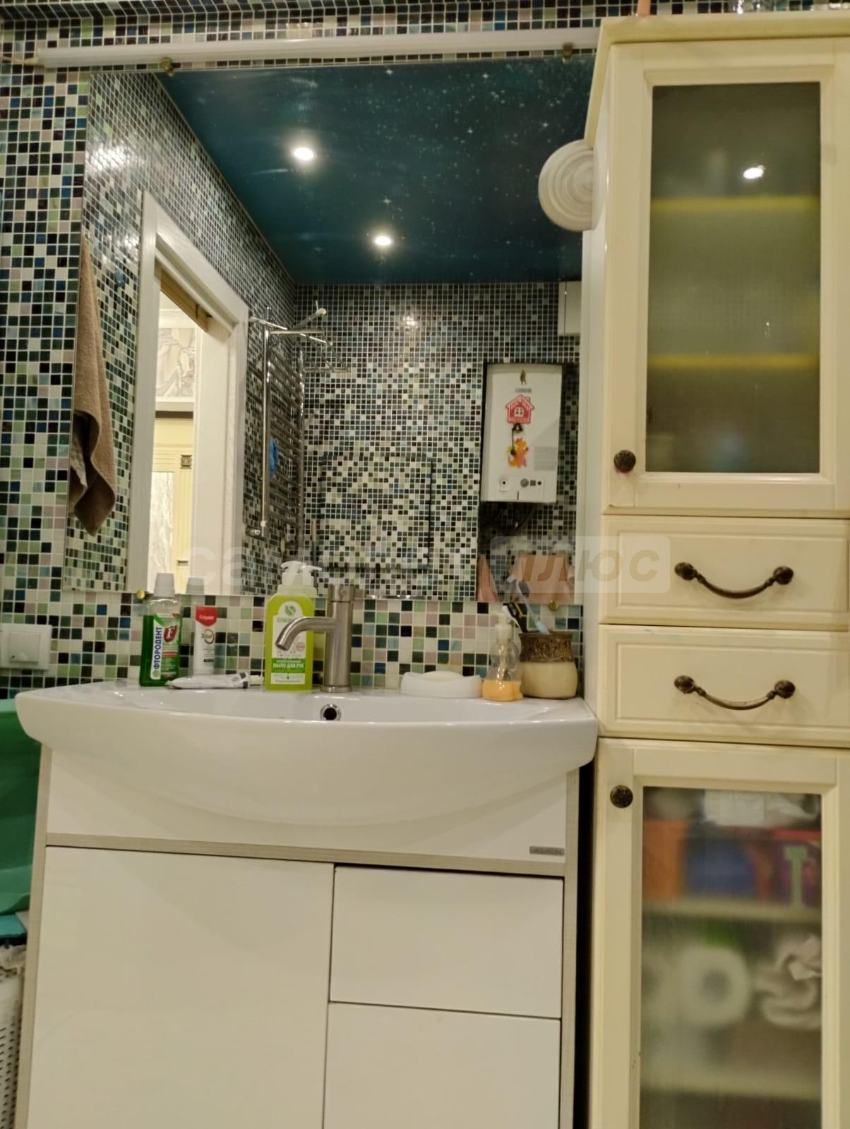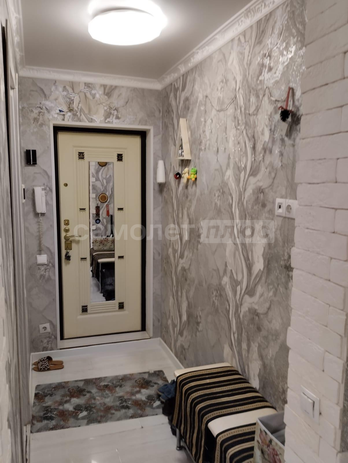 В квартире флизелиновые обои, ламинат, натяжные потолки, сан.узел полностью в плитке, имеется вся сантехника.