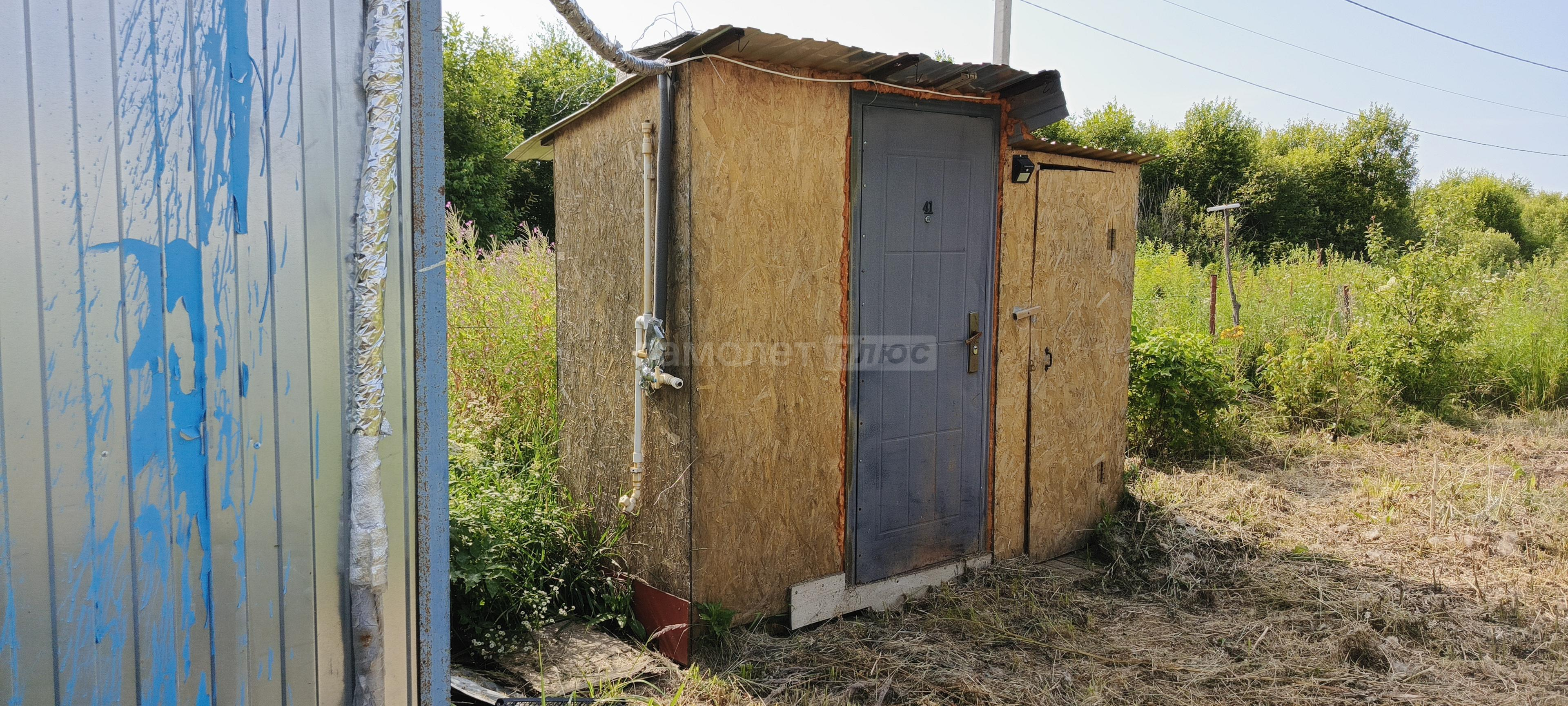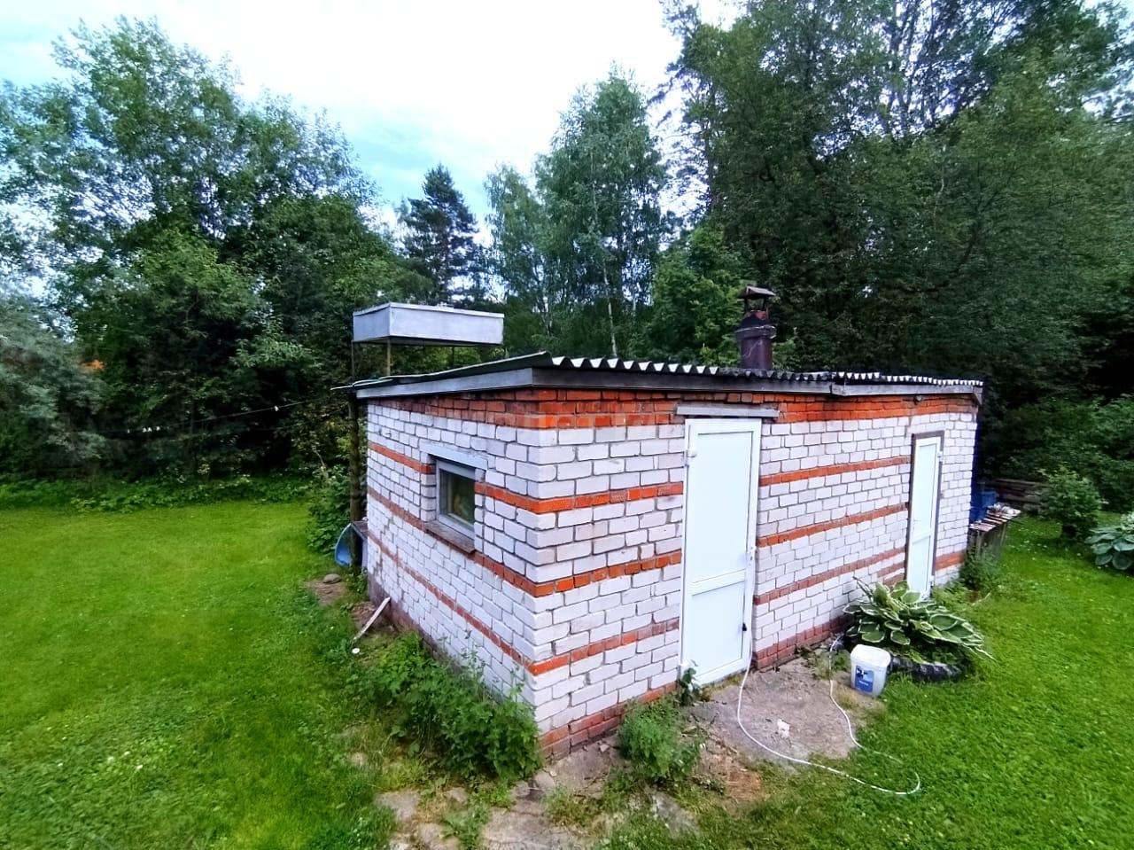 На территории кирпичная постройка с душем (всегда горячая вода от электрического бойлера) и парная.