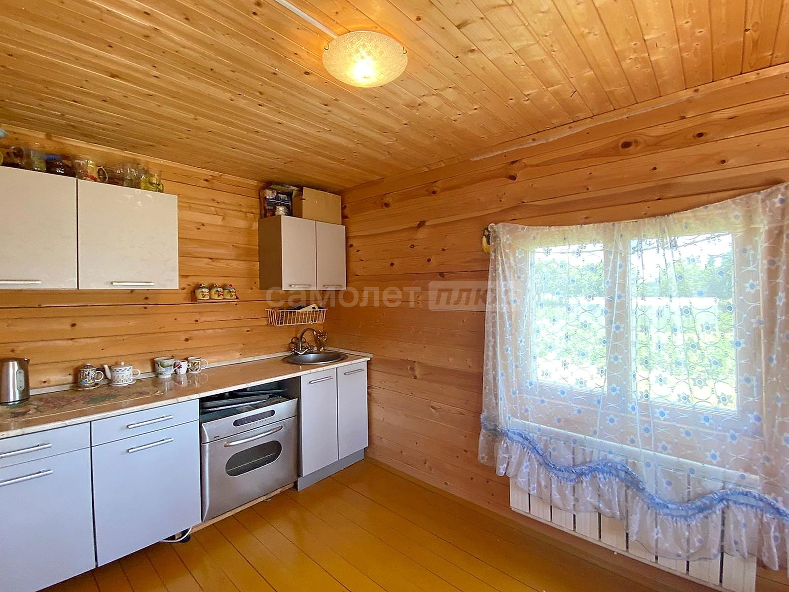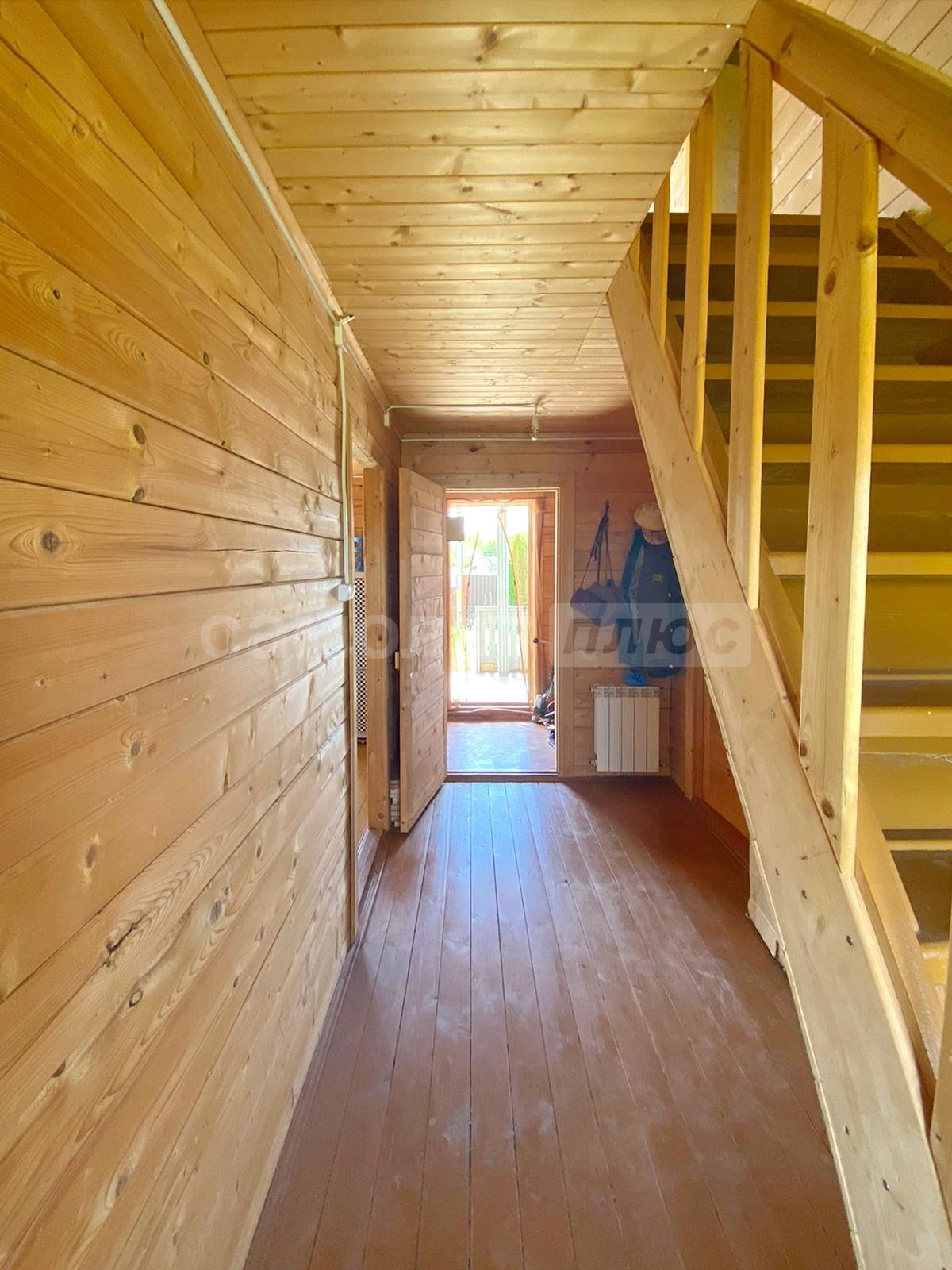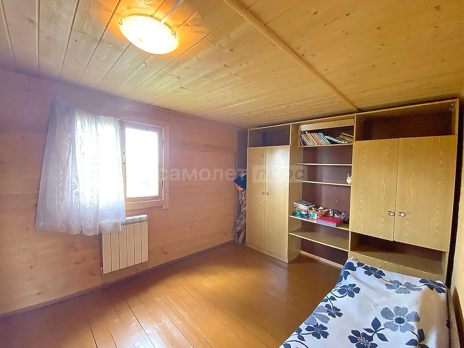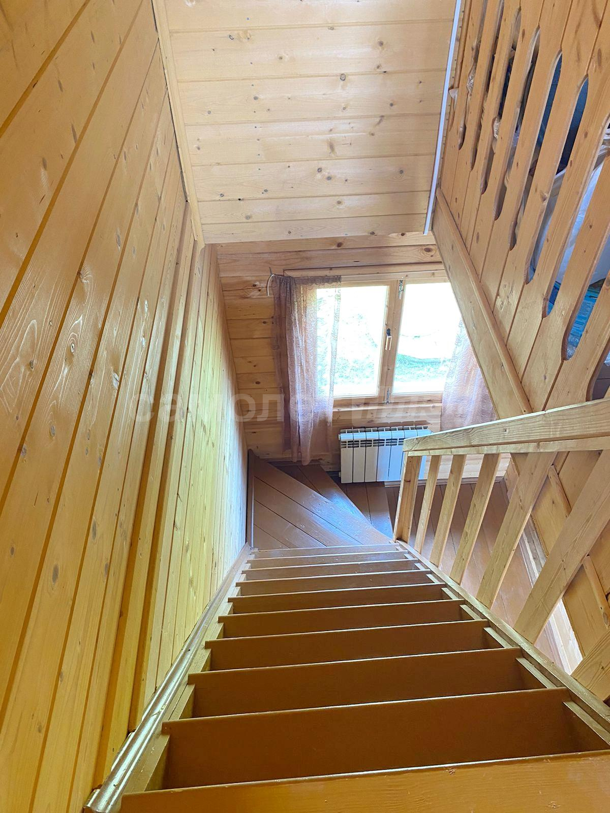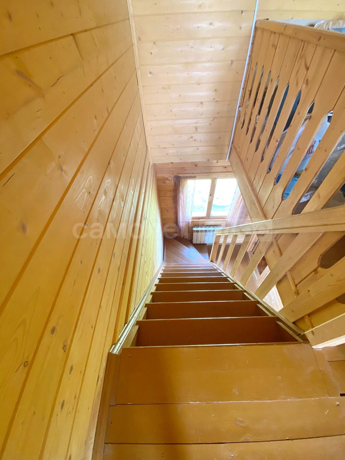 В доме две спальни, гостиная, просторная кухня с оборудованной мойкой, комната под санузел с бойлером под горячую воду 20 литров. Стены и потолки из бруса, полы и окна деревянные. Первый и второй этаж соединяет лестница из натурального дерева. Просторные входные зоны на первом и втором этажах. Имеется большое крыльцо и балкон-веранда на втором этаже, с которого открывается великолепный панорамный вид на поселок. Дом ухожен. В отличном жилом состоянии. Просторный и светлый. Полностью подходит для комфортного проживания с марта по ноябрь. Оборудован всей необходимой мебелью и техникой. Пригоден для круглогодичного проживания, если в дом завезти газ, который проходит по границе участка. Радиаторы отопления установлены по периметру дома.