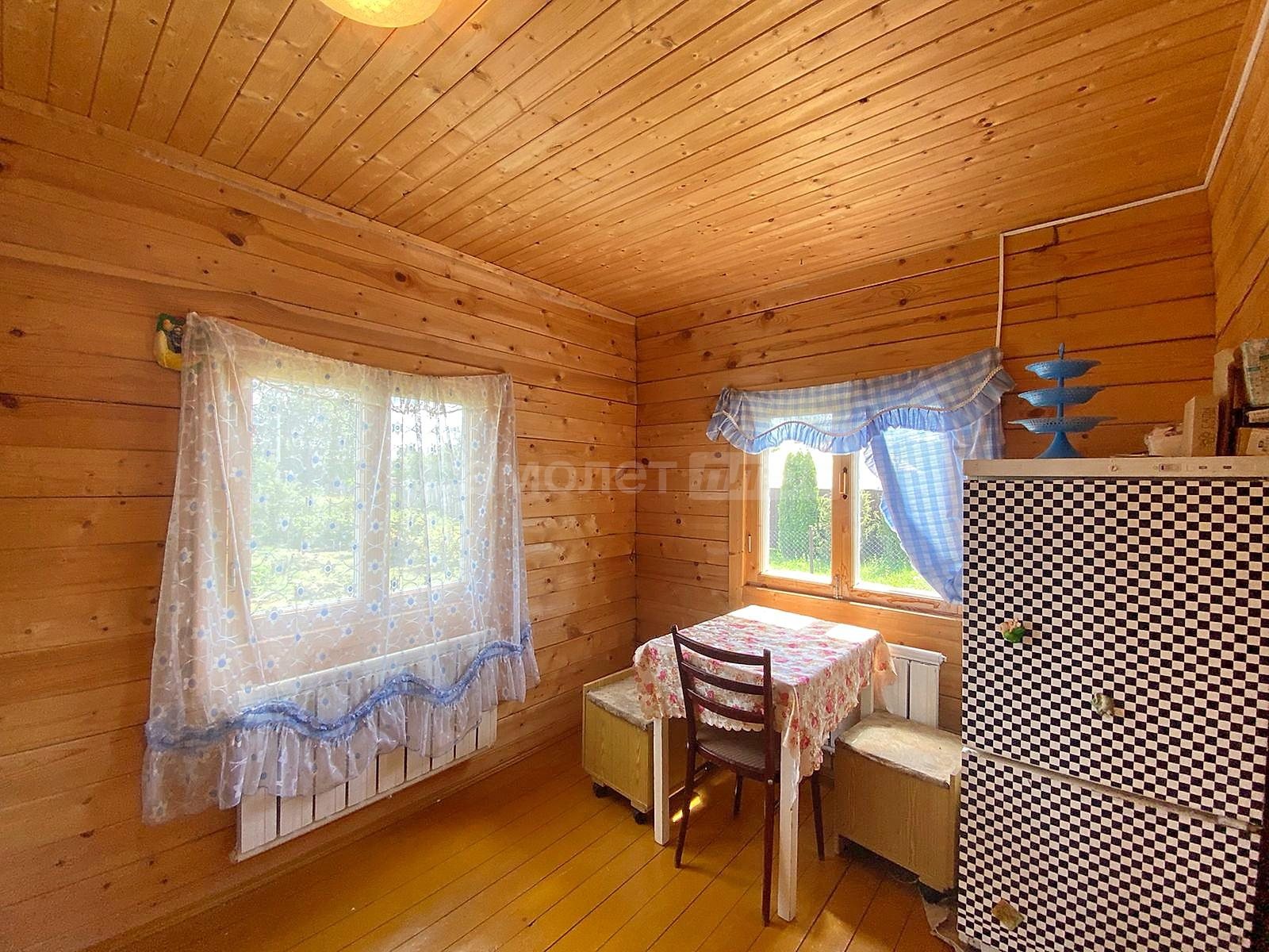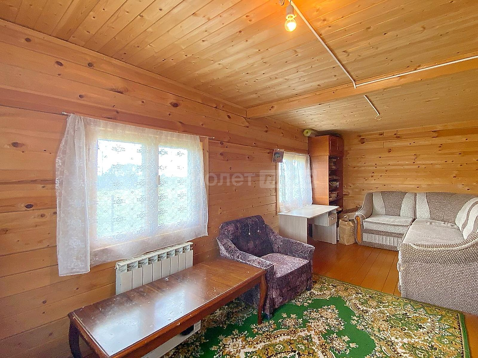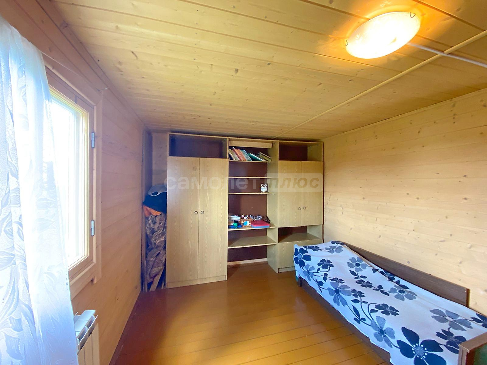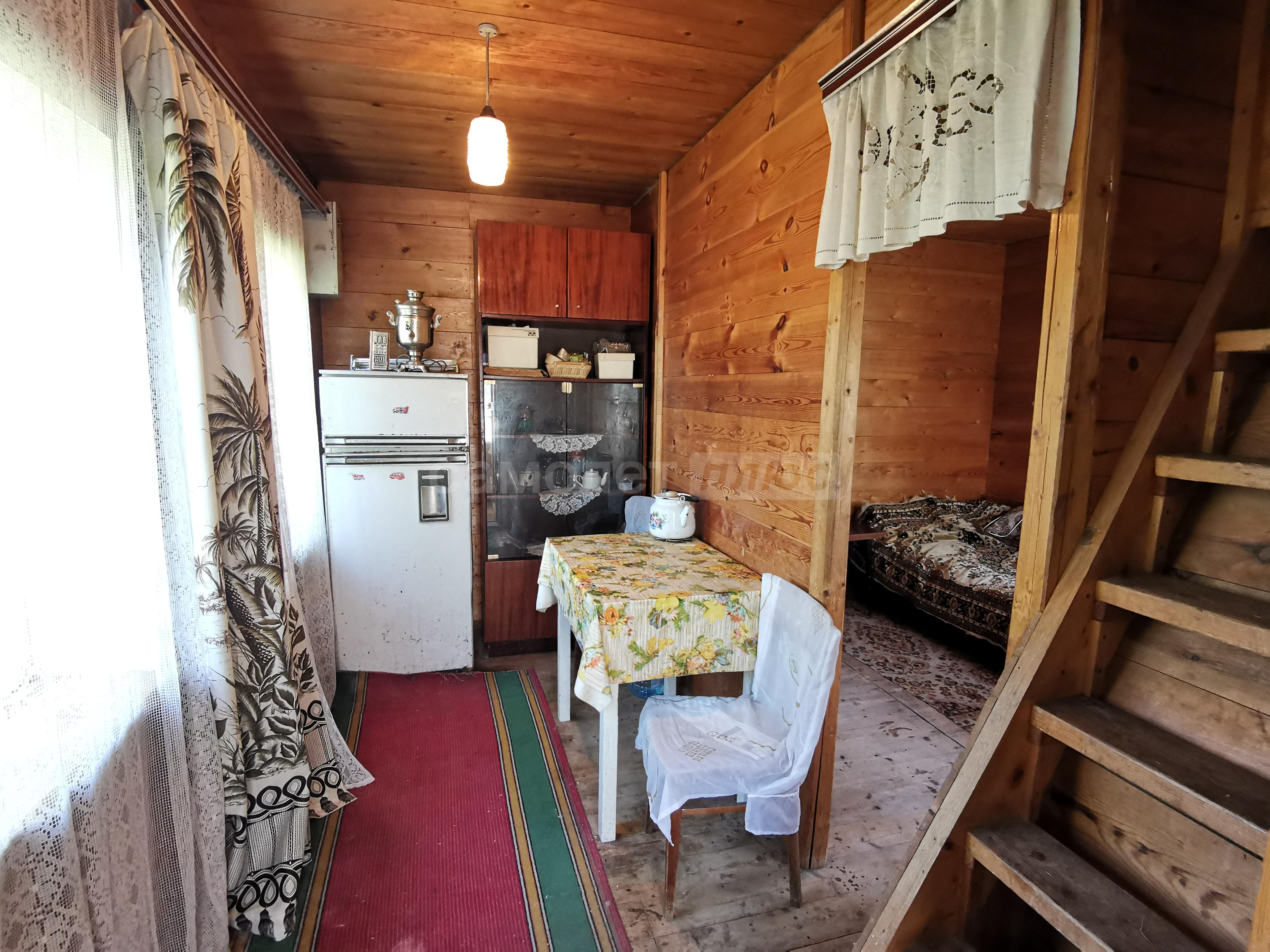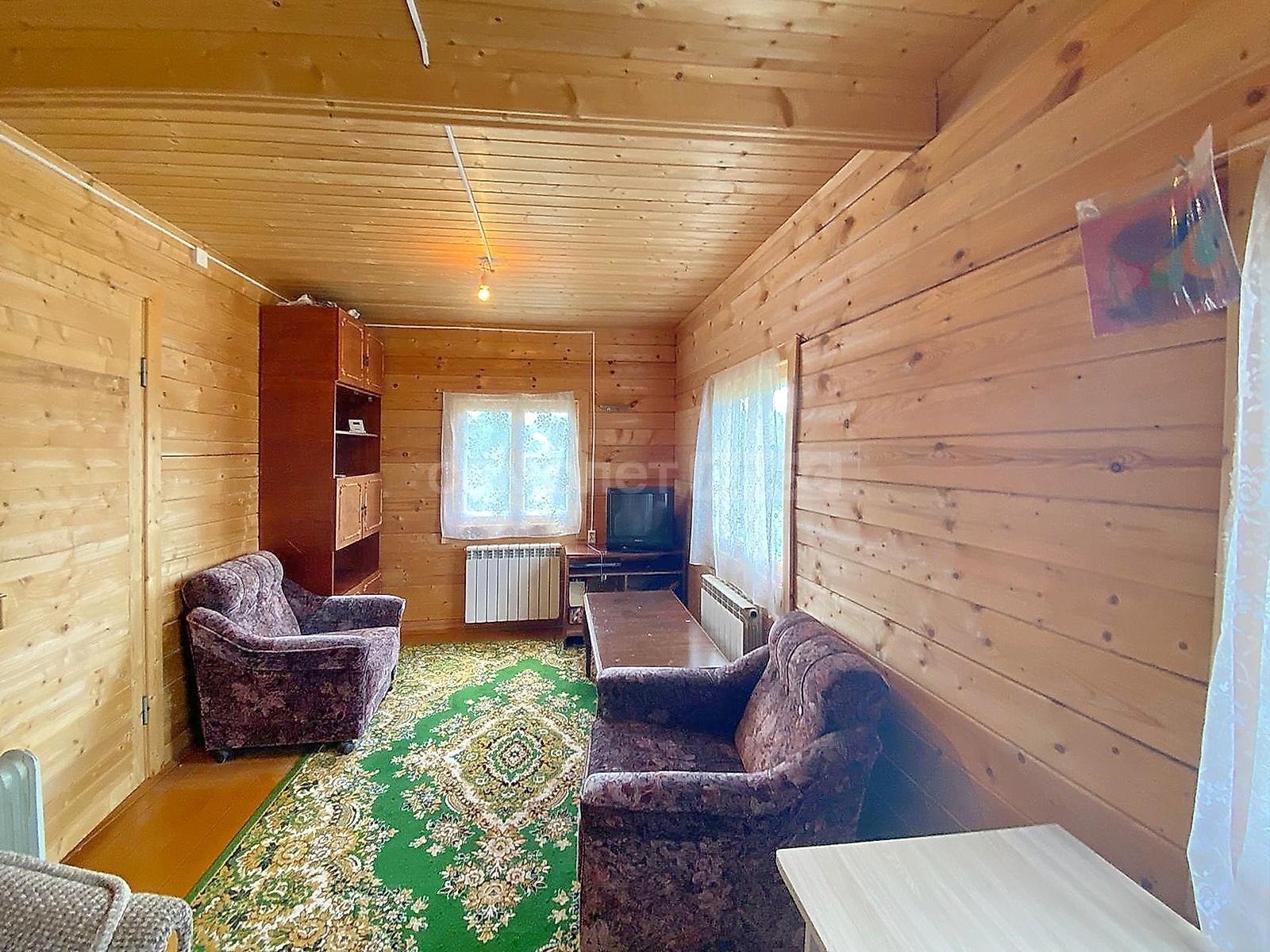 В доме две спальни, гостиная, просторная кухня с оборудованной мойкой, комната под санузел с бойлером под горячую воду 20 литров. Стены и потолки из бруса, полы и окна деревянные. Первый и второй этаж соединяет лестница из натурального дерева. Просторные входные зоны на первом и втором этажах. Имеется большое крыльцо и балкон-веранда на втором этаже, с которого открывается великолепный панорамный вид на поселок. Дом ухожен. В отличном жилом состоянии. Просторный и светлый. Полностью подходит для комфортного проживания с марта по ноябрь. Оборудован всей необходимой мебелью и техникой. Пригоден для круглогодичного проживания, если в дом завезти газ, который проходит по границе участка. Радиаторы отопления установлены по периметру дома.