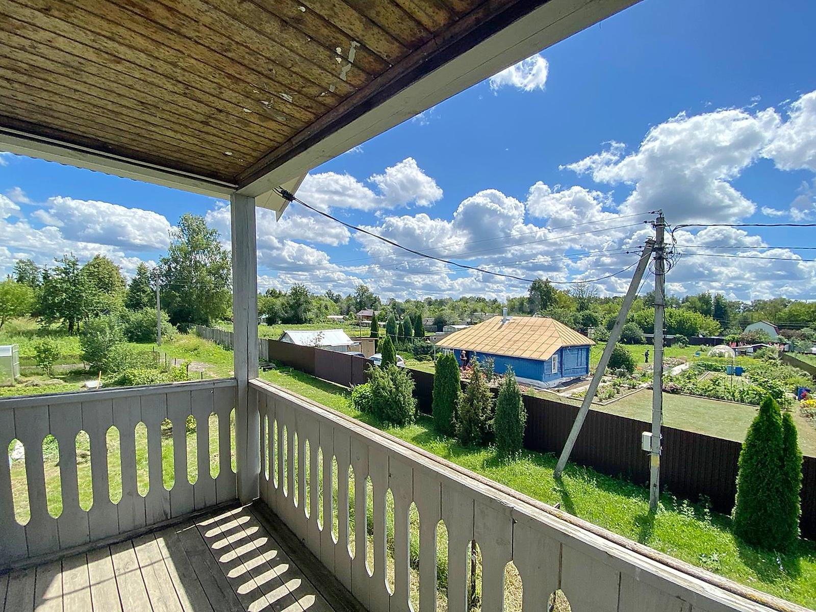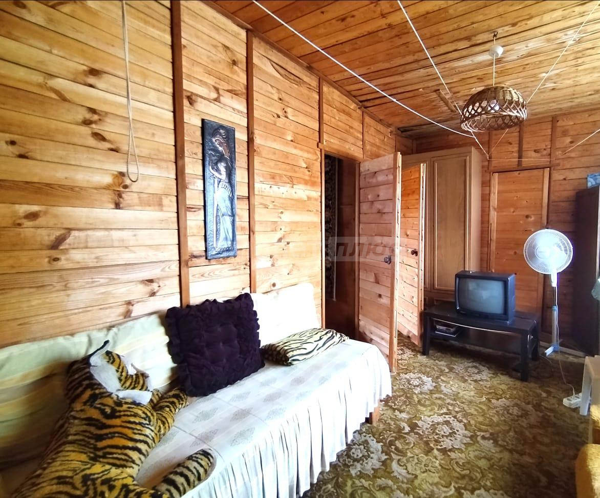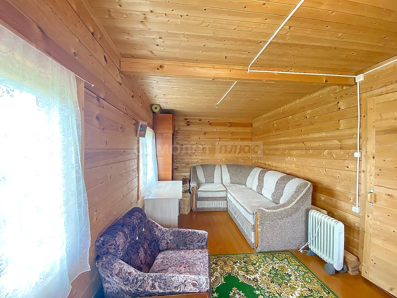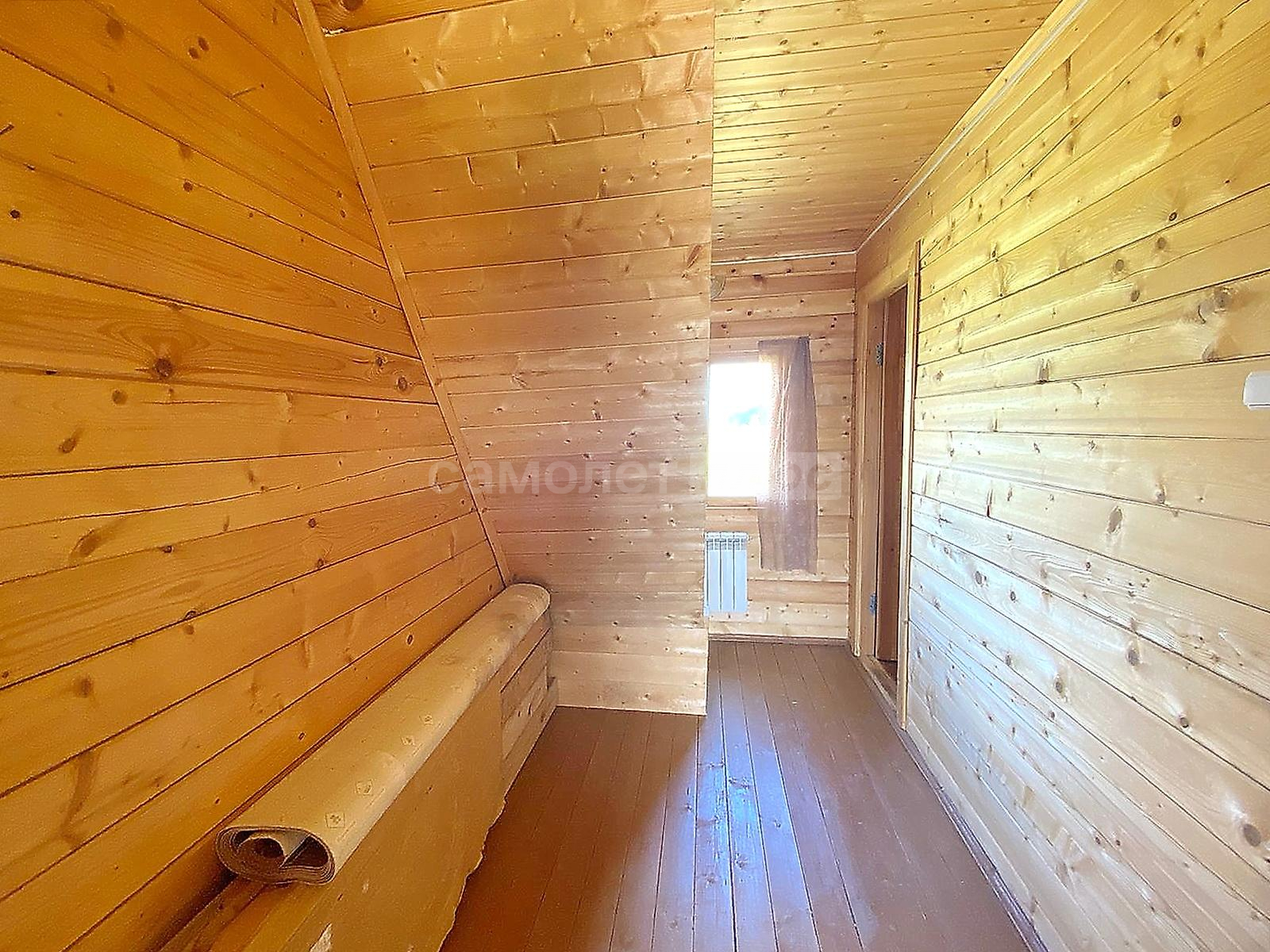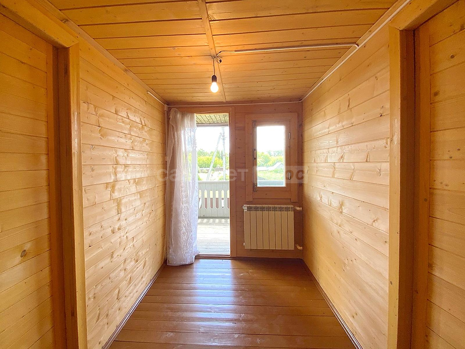 В доме две спальни, гостиная, просторная кухня с оборудованной мойкой, комната под санузел с бойлером под горячую воду 20 литров. Стены и потолки из бруса, полы и окна деревянные. Первый и второй этаж соединяет лестница из натурального дерева. Просторные входные зоны на первом и втором этажах. Имеется большое крыльцо и балкон-веранда на втором этаже, с которого открывается великолепный панорамный вид на поселок. Дом ухожен. В отличном жилом состоянии. Просторный и светлый. Полностью подходит для комфортного проживания с марта по ноябрь. Оборудован всей необходимой мебелью и техникой. Пригоден для круглогодичного проживания, если в дом завезти газ, который проходит по границе участка. Радиаторы отопления установлены по периметру дома.