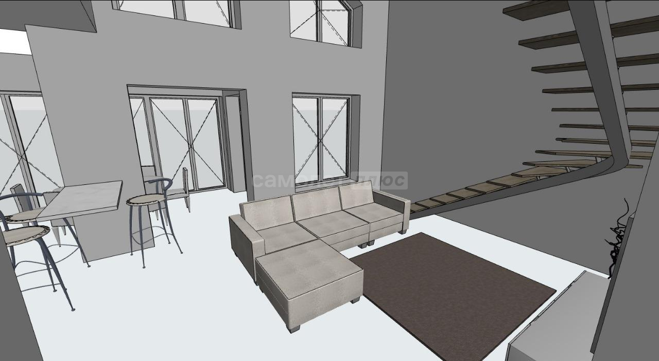 - Большая кухня-гостиная 28 м2, с камином и выходом на веранду.