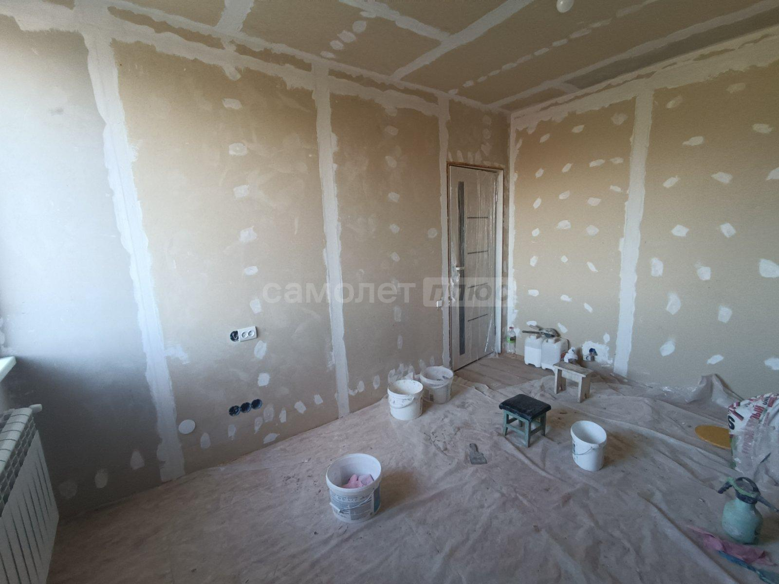1-й этаж: тамбур 4,24 кв.м. черновая отделка, бойлерная 5,46 кв. м. оштукатурена, гардеробная 6,05 кв.м. черновая отделка, спальня 11,88 кв.м. предчистовая отделка, на полу электрический теплый пол, прихожая 10,04 кв.м. черновая отделка, санузел 4,96 кв.м. черновая отделка (имеется санузел и душевая), кухня – гостиная 37,17 кв.м. черновая отделка. Терраса при входе 13,44 кв. м.
