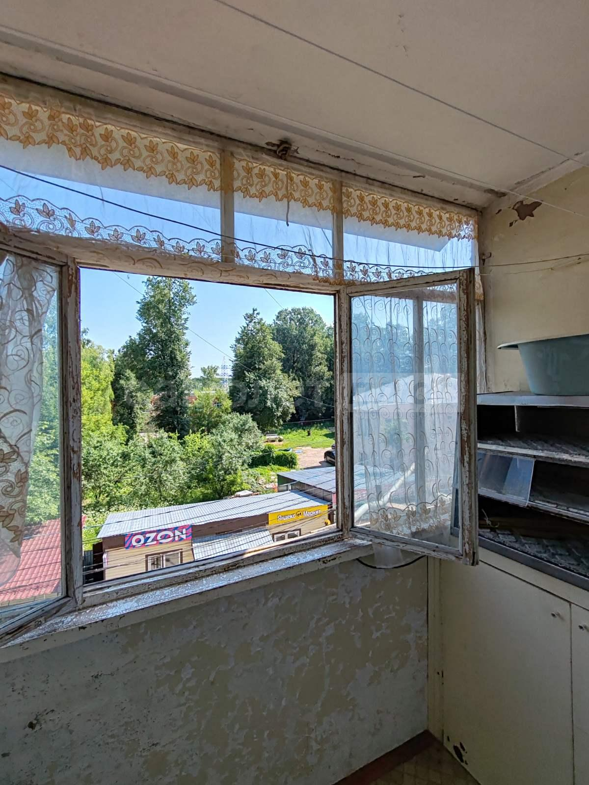 Первый этаж 9 этажного дома, высокий цоколь. Чистый и отремонтированный подъезд, уютный двор с детской площадкой. Дом 1986 года постройки. Рядом находится сквер «Тайфун».