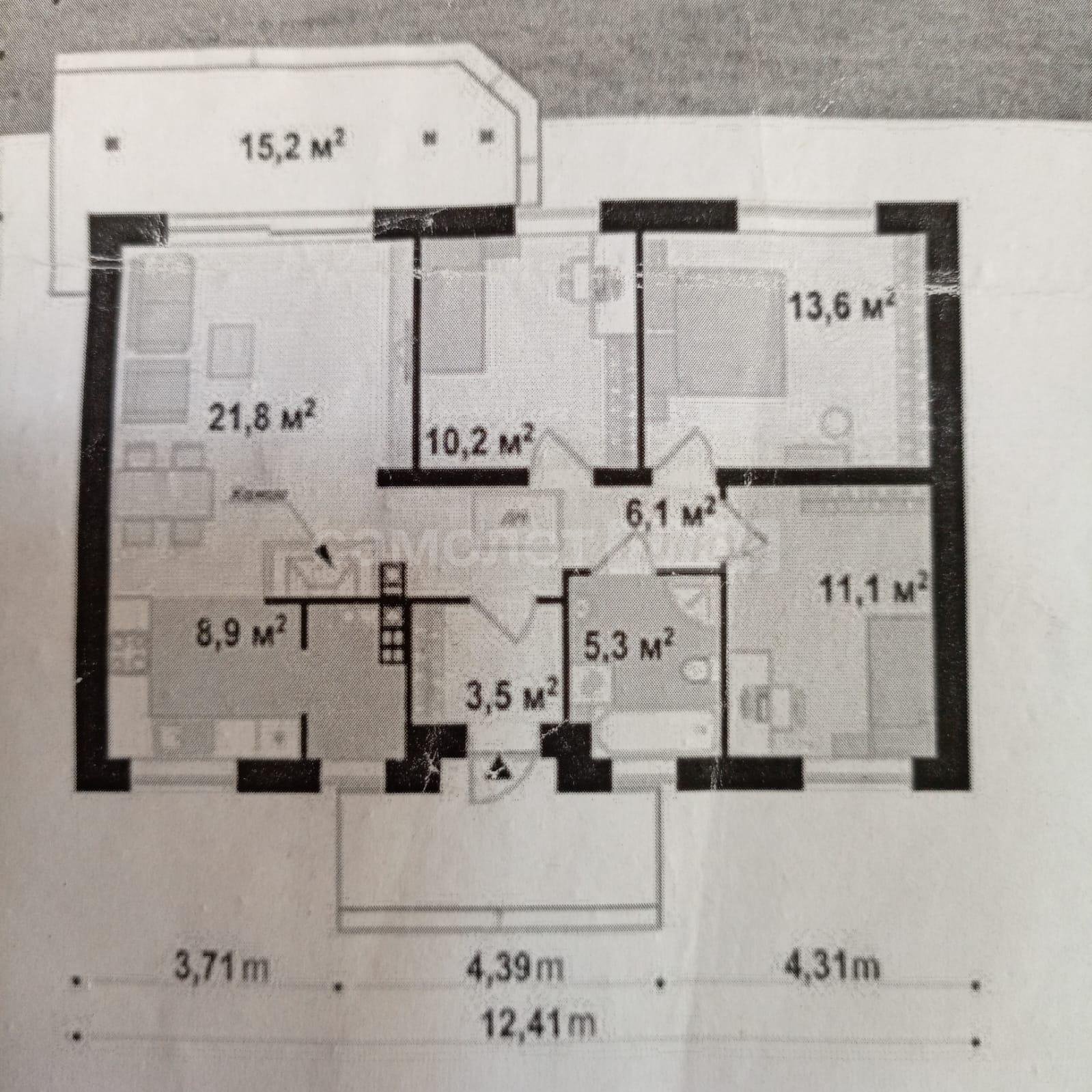 - Кухня-гостиная 30.7 кв.м., 3 комнаты 13,6+10,2+11,1