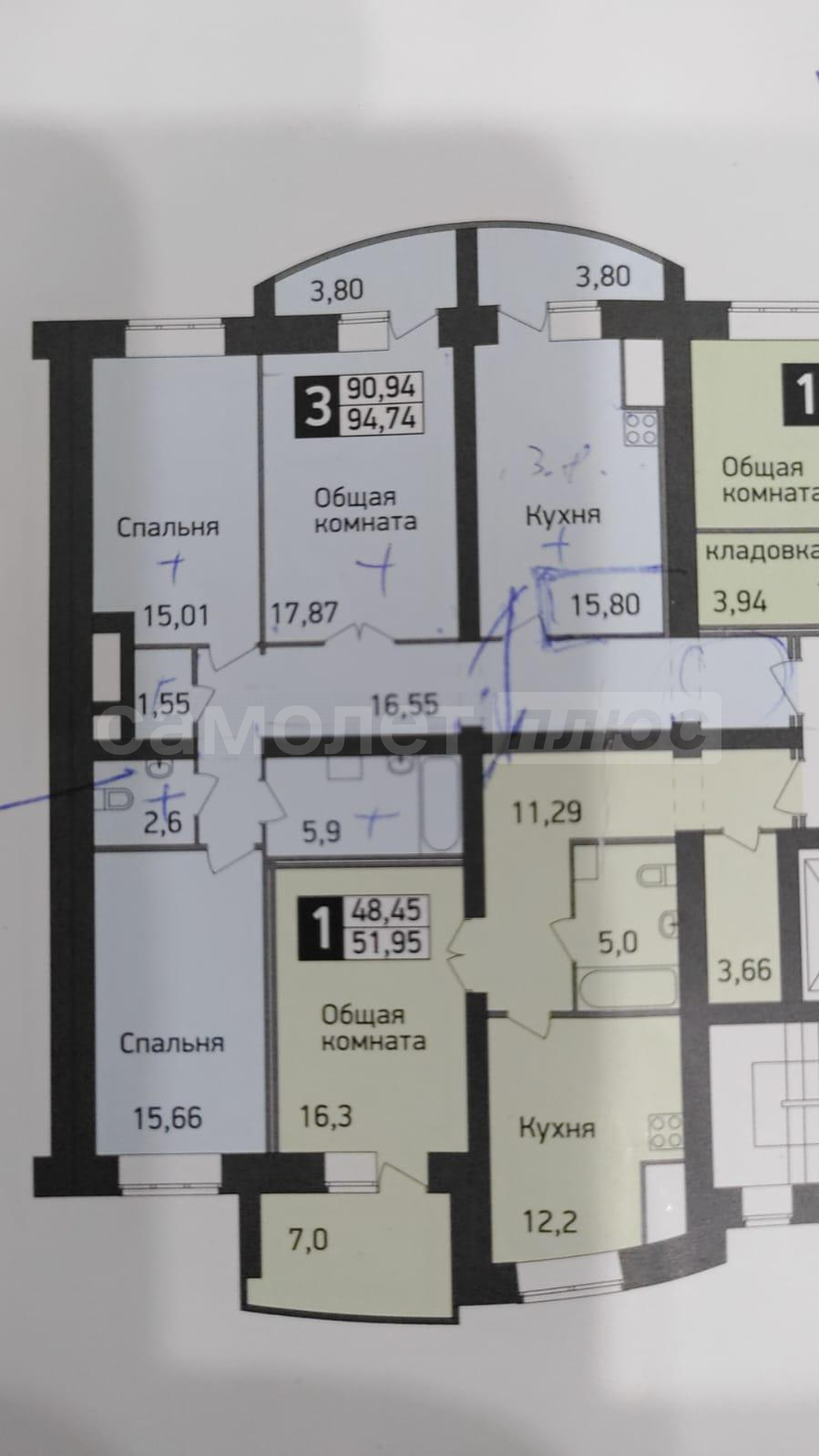 Раздельные комнаты, 17,1+10,3+12,3, просторная прихожая и кухня 10,16кв.м. Санузел раздельный.
