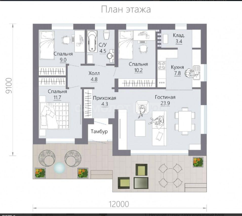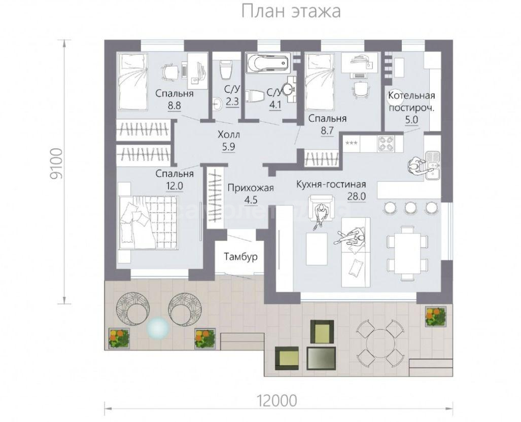 🔹 3 спальни – комфортные и светлые (12/11/10 м²), чтобы каждый член семьи чувствовал себя уютно.