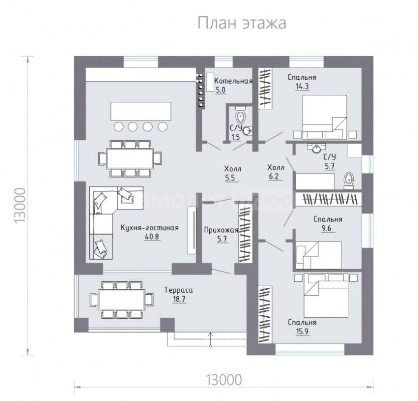 Это уютный дом свободной планировкой и дизайном от 2-3 комнат, можно с мастер спальней с санузлом и гардеробной, кухня-столовая до 30 кв.м. можно с кладовой проекты смотрите в разделе фото