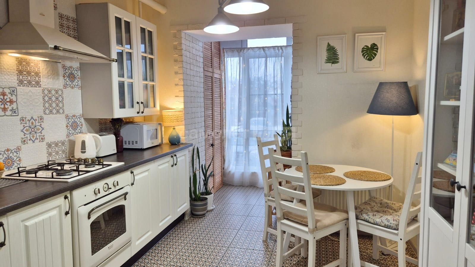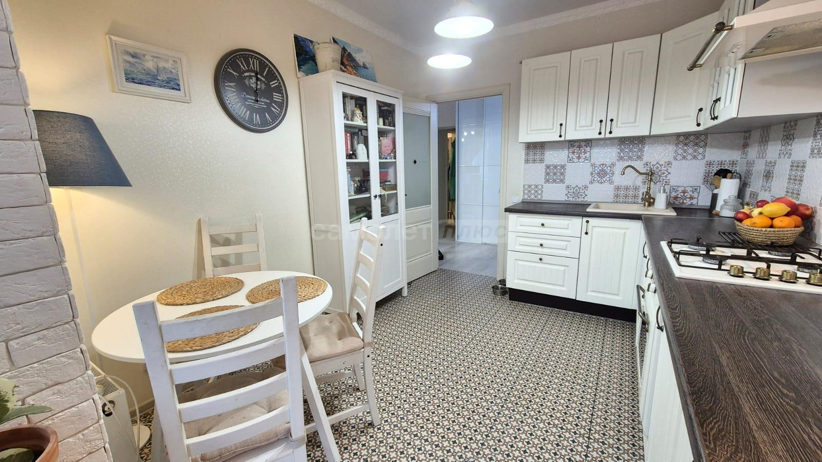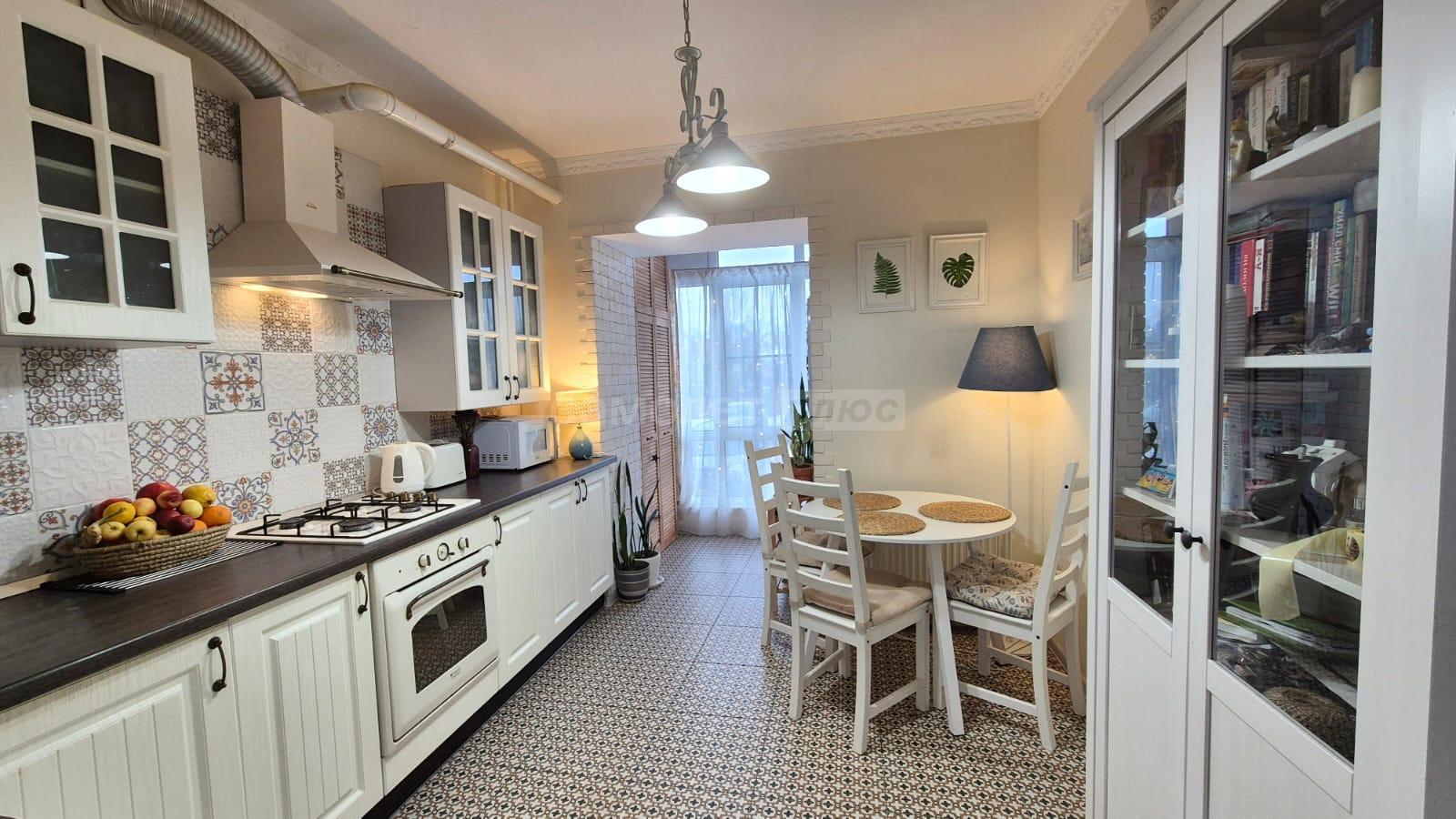 Кухня 10 кв.м. + лоджия. Новый, совершенно бесшумный котел, теплые полы! Кухонный гарнитур остается при продаже. Окна выходят на Восток и вы можете любоваться рассветом за завтраком.