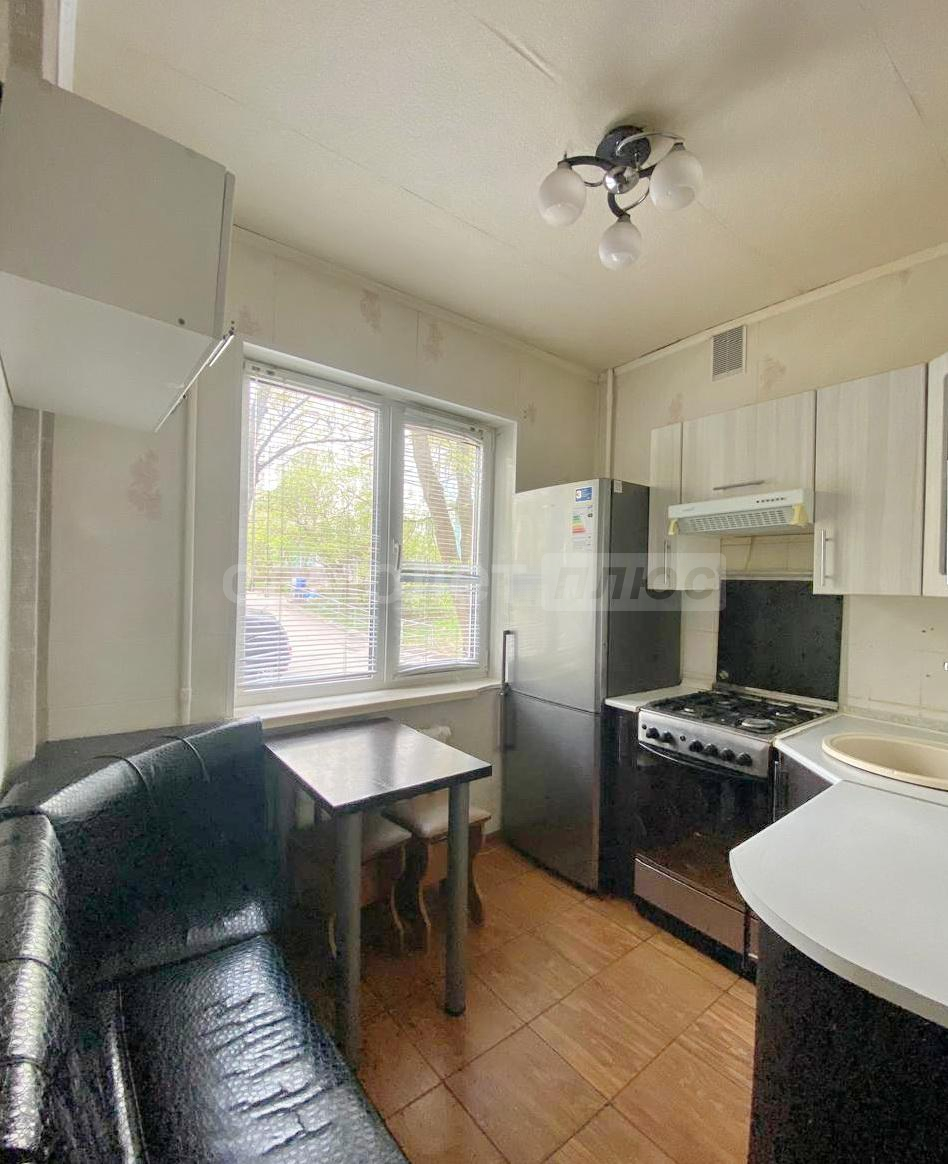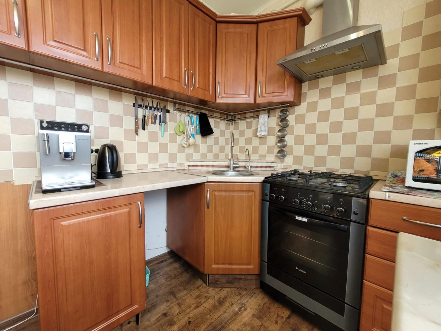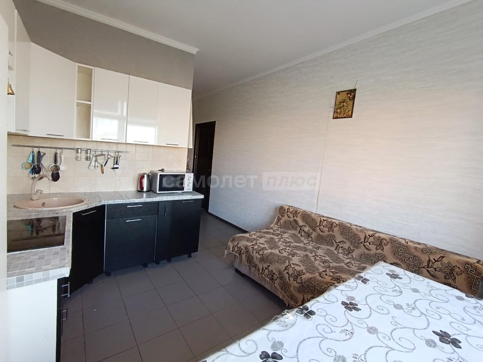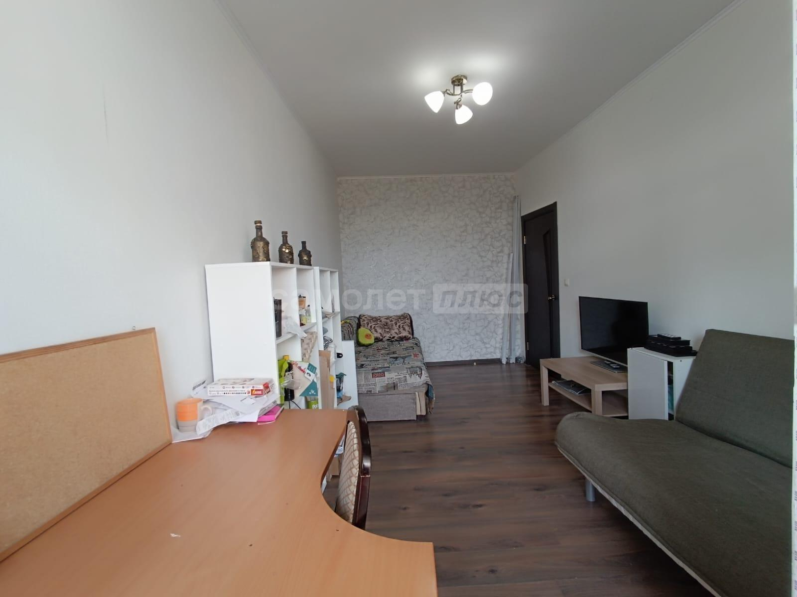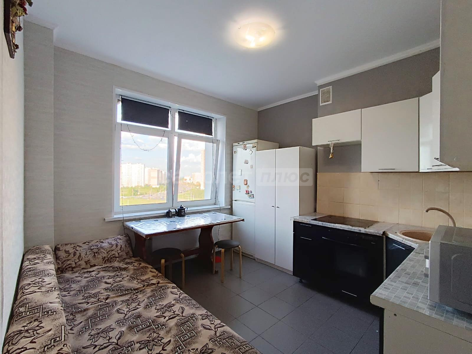 В квартире остаётся кухонный гарнитур, кухонный стол и со стульями, мягкая мебель в гостиной, телевизор с тумбой.