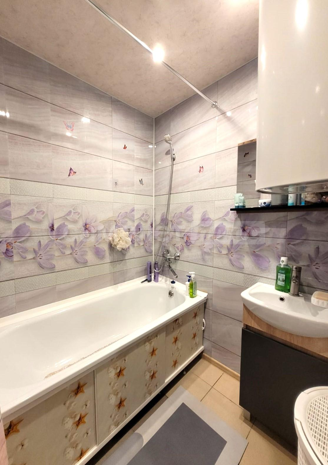Квартира расположена на две стороны. Имеется просторная лоджия с панорамным остеклением. В квартире выполнен хороший ремонт. Окна ПВХ. Потолки идеально ровные (не натяжные). На полу в комнатах ламинат. В зоне кухни и прихожей плитка. Санузел раздельный. Выложен современной плиткой. Просторная прихожая. Новая, качественная входная дверь. Окна ПВХ (увеличенные от застройщика) на разные стороны восток и запад. Утром с комнаты и кухни можно наблюдать восход солнца с видом на горнолыжный курорт Квань, а вечером с панорамного балкона, можно наслаждаться закатом.