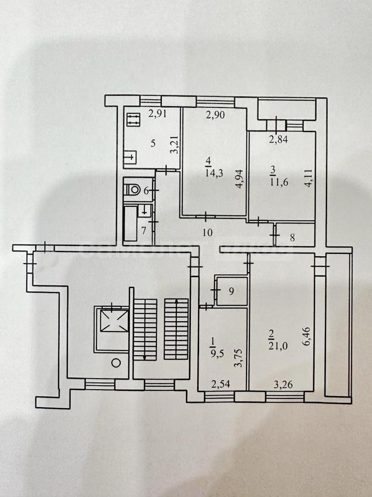 * Общая площадь 92,5 кв.м, четыре изолированные комнаты 21 кв.м., 14,3 м.кв, 11,6 м.кв., 9,5 кв.м.