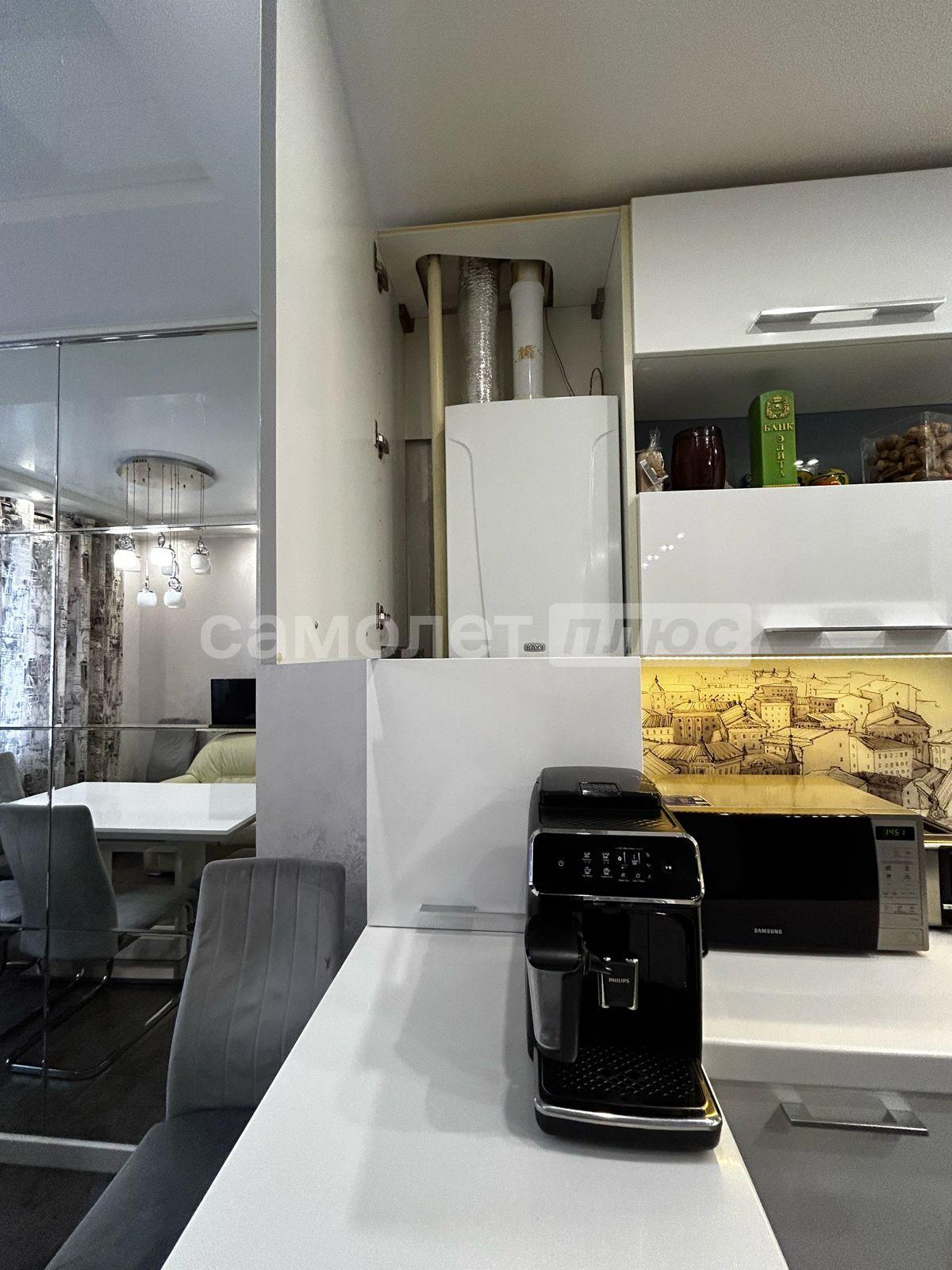 Эта квартира, с общей площадью 66,1 кв.м, поражает своими изысканными деталями: просторные изолированные комнаты, на полу паркет, раздельный санузел с теплым полом в ванной, а также кухня с встроенной техникой и выходом на замечательную остекленную лоджию.