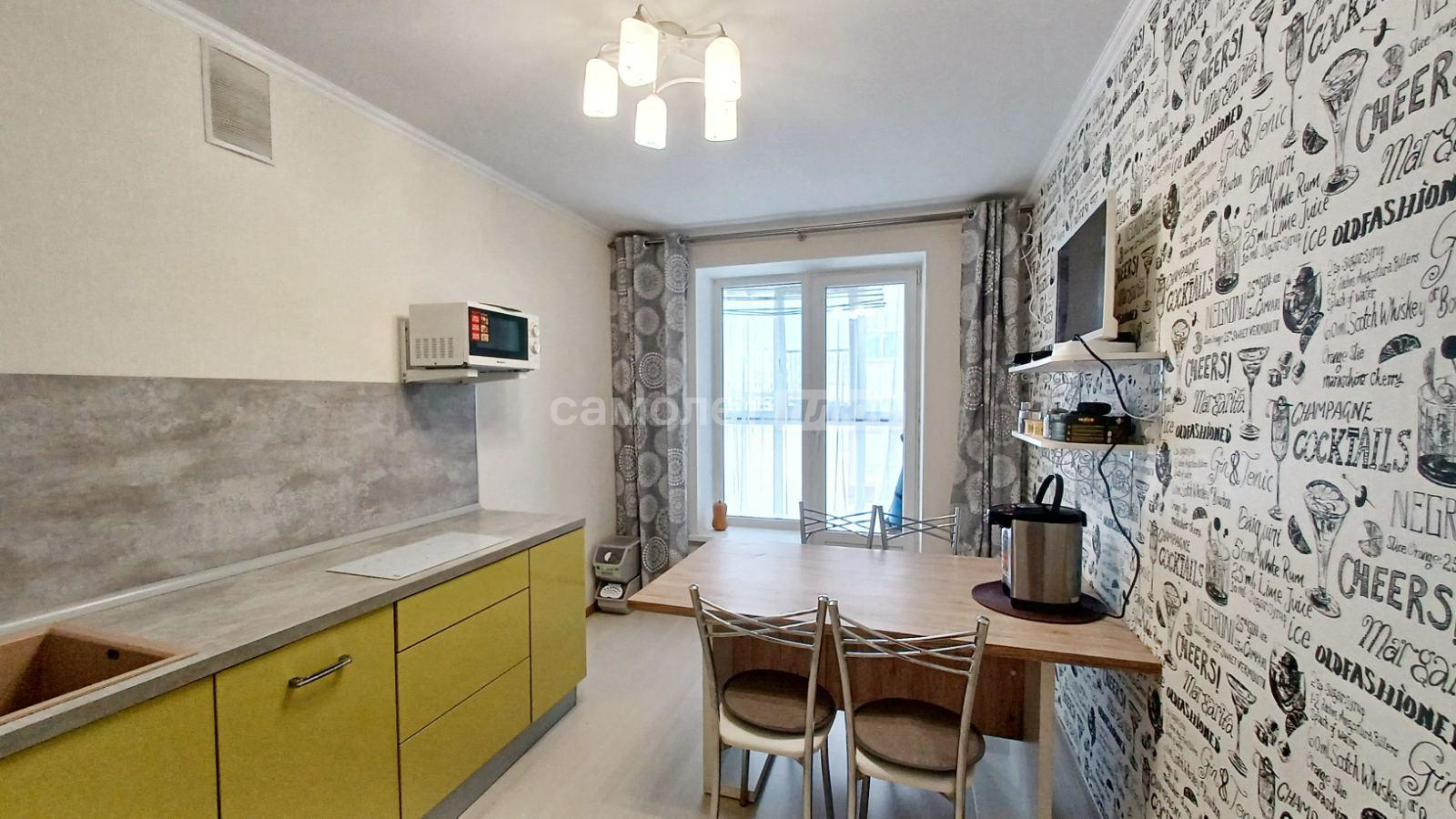 Кухня площадью 11,4 кв.м. с выходом на застекленную лоджию. Кухонный гарнитур остается при продаже.