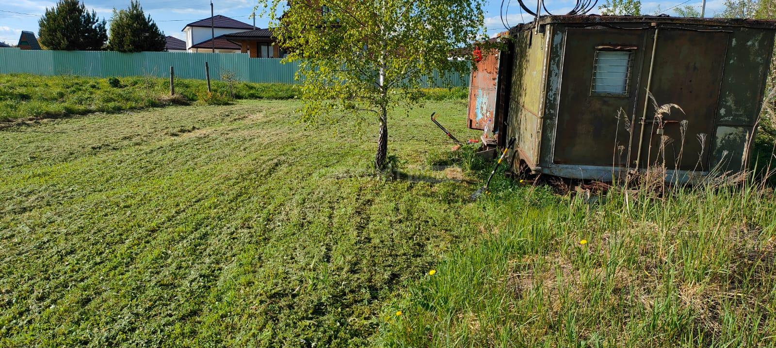 На участке стоит вагончик.
