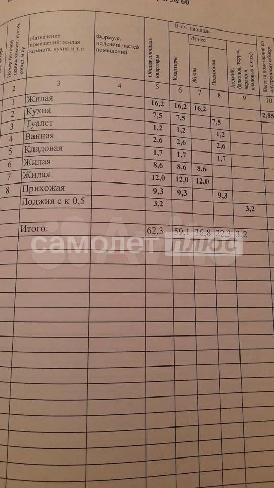 Общая площадь квартиры составляет 59,4м2; жилая 41,7м2
