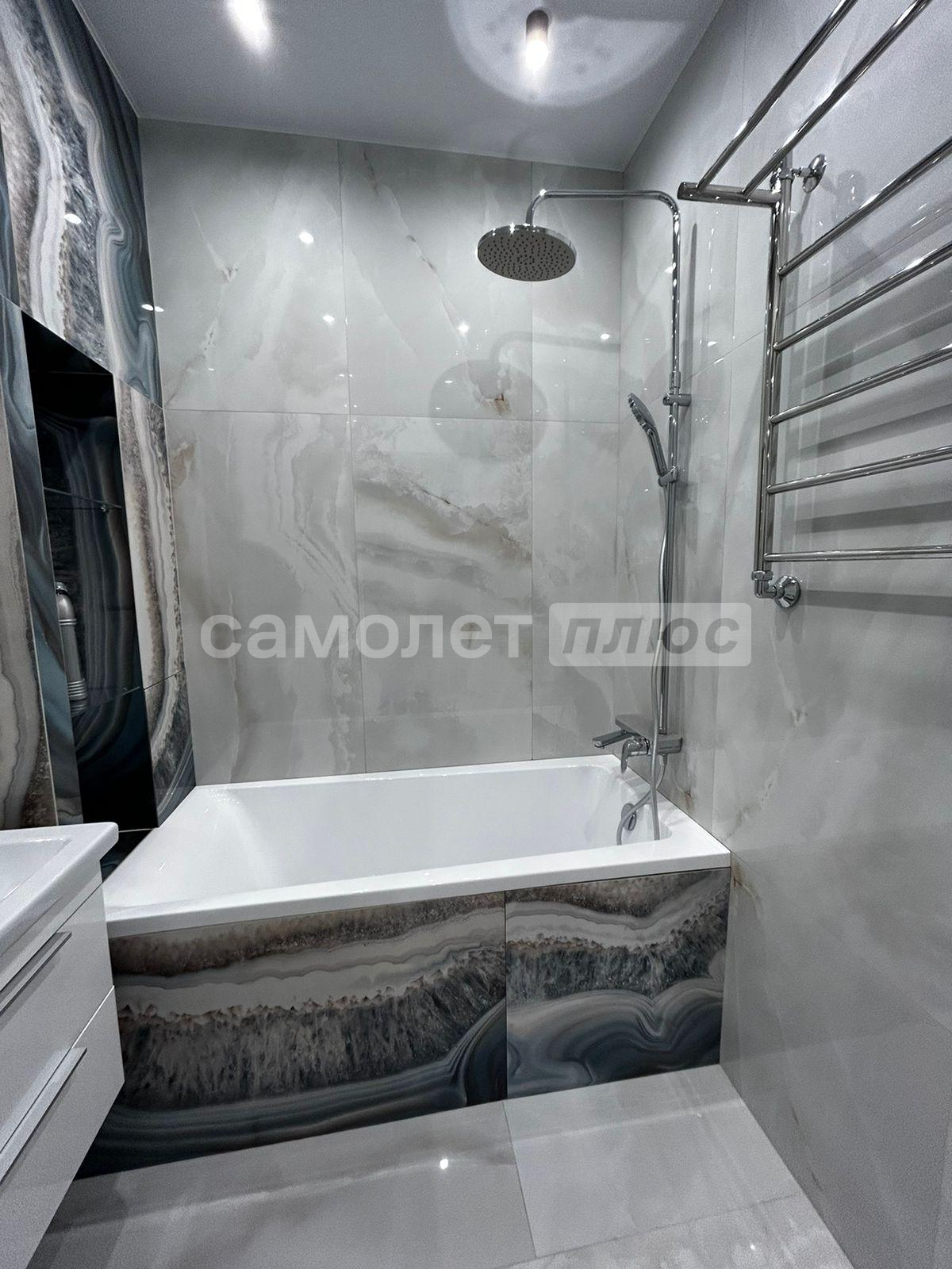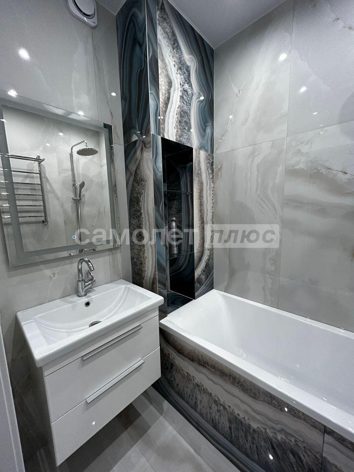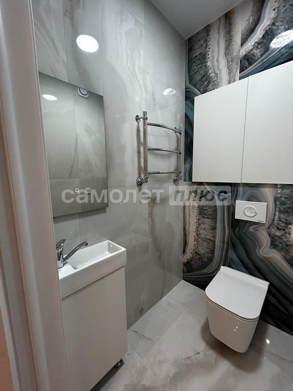 - Дорогие и качественные материалы: керамогранит, кварцвинил, экологические обои и краски, подствтка с датчиками движения;