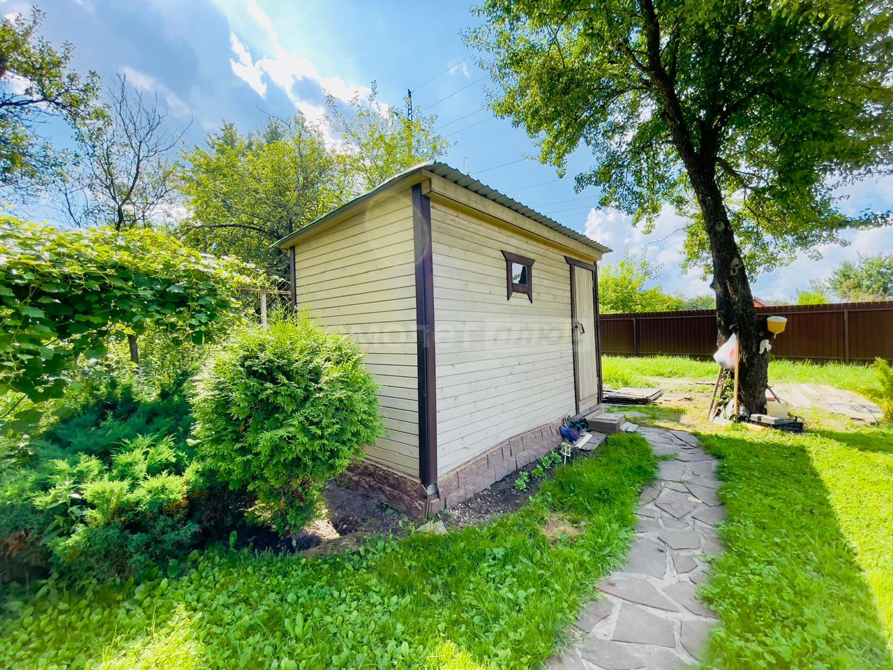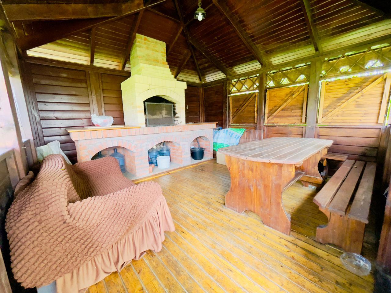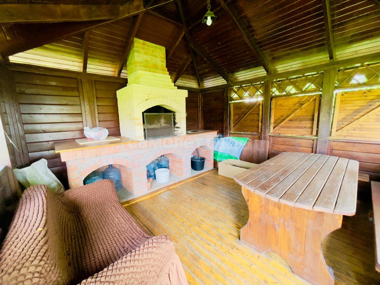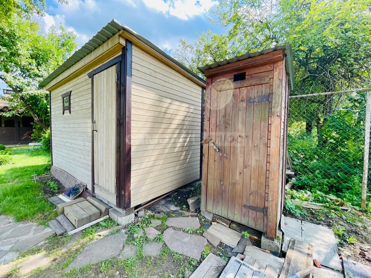 На участке имеется закрытая беседка с камином и мангальной зоной, также домик для хранения садовой техники и уличный туалет.