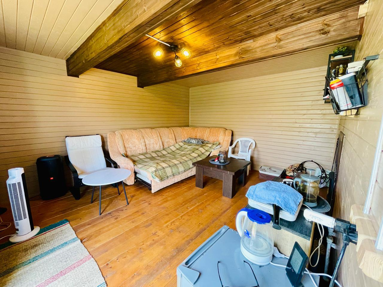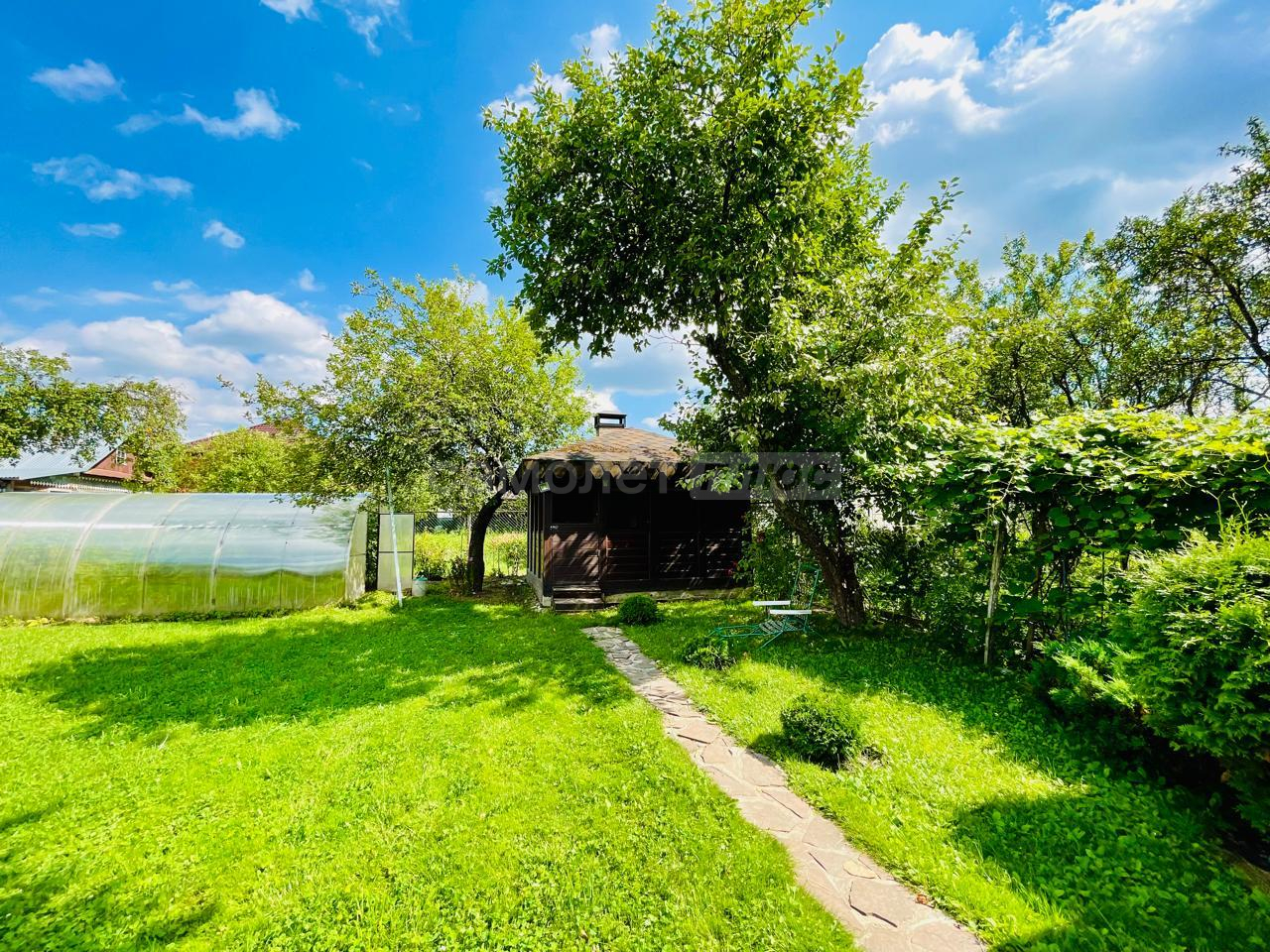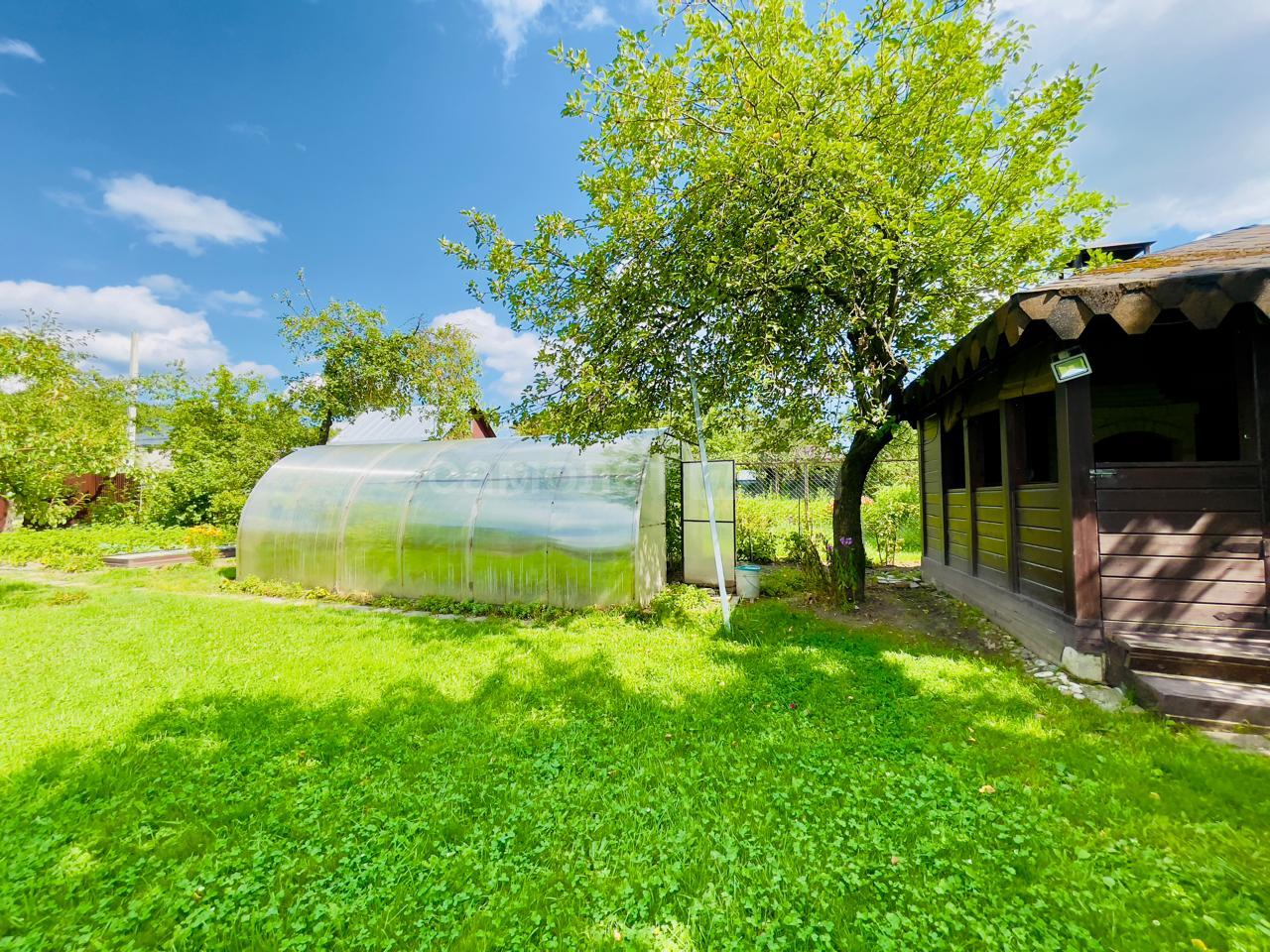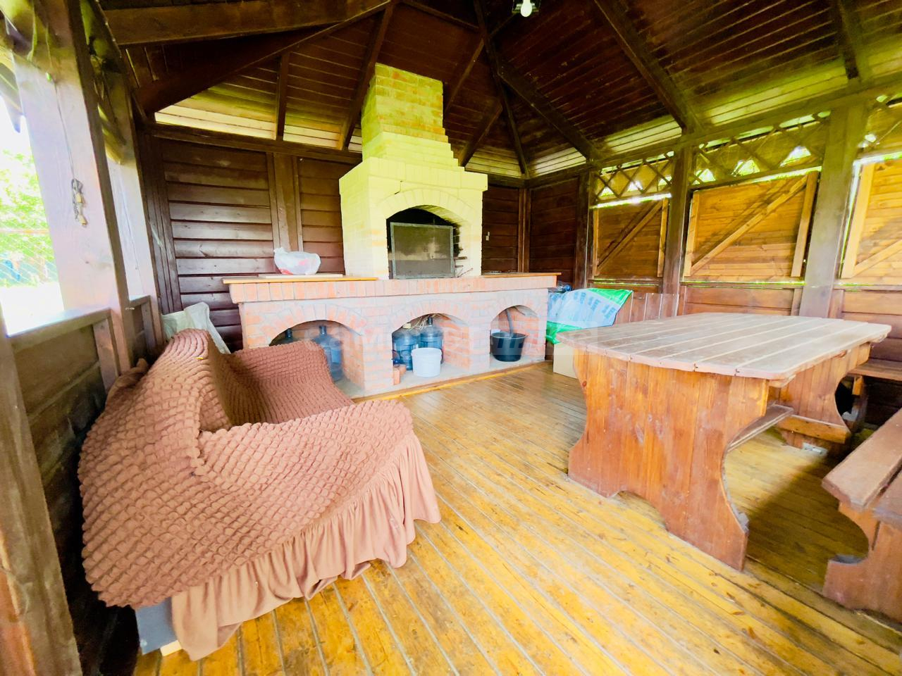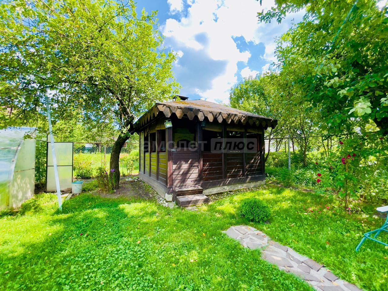 На участке имеется закрытая беседка с камином и мангальной зоной, также домик для хранения садовой техники и уличный туалет.