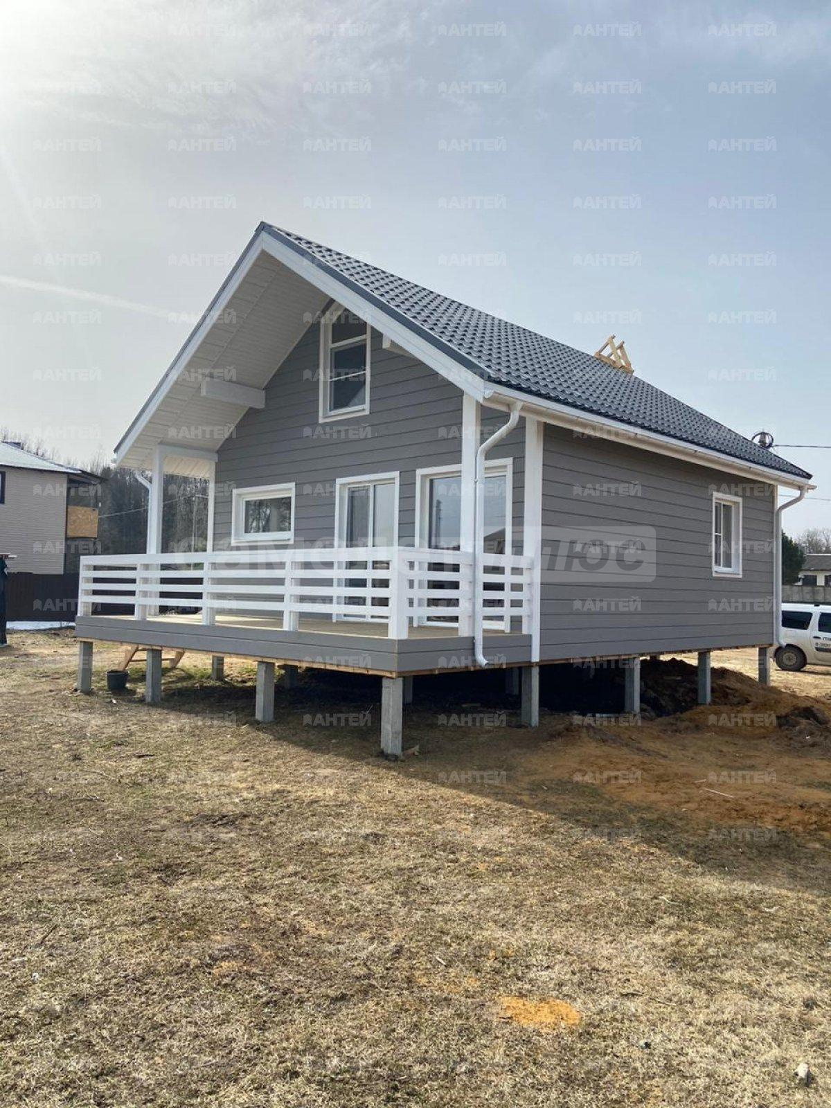 Дом размером 7,5х12 кв.м. установлен на сваях. Каркас стен: обрезной брус 40х100мм. Утепление стен/пола: 100мм. , перегородки: 50мм. (мин. вата «Knauf/Ursa») парогидроизоляция проложена с двух сторон. Кровельный материал: металлочерепица Grand Line толщина металла 0,45мм. с утеплением. Окна в доме ПВХ. На первом этаже расположены просторная прихожая, кухня-гостиная, спальня. На втором этаже две спальни. Отделка в доме вагонка. Дом расположен на участке 8 соток.