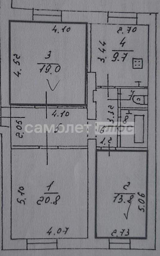 3 - изолированные комнаты площадью 13/19/20 Кв.м. в двух комнатах сделан косметический ремонт с заменой окон и напольного покрытия. Постелили линолиум.